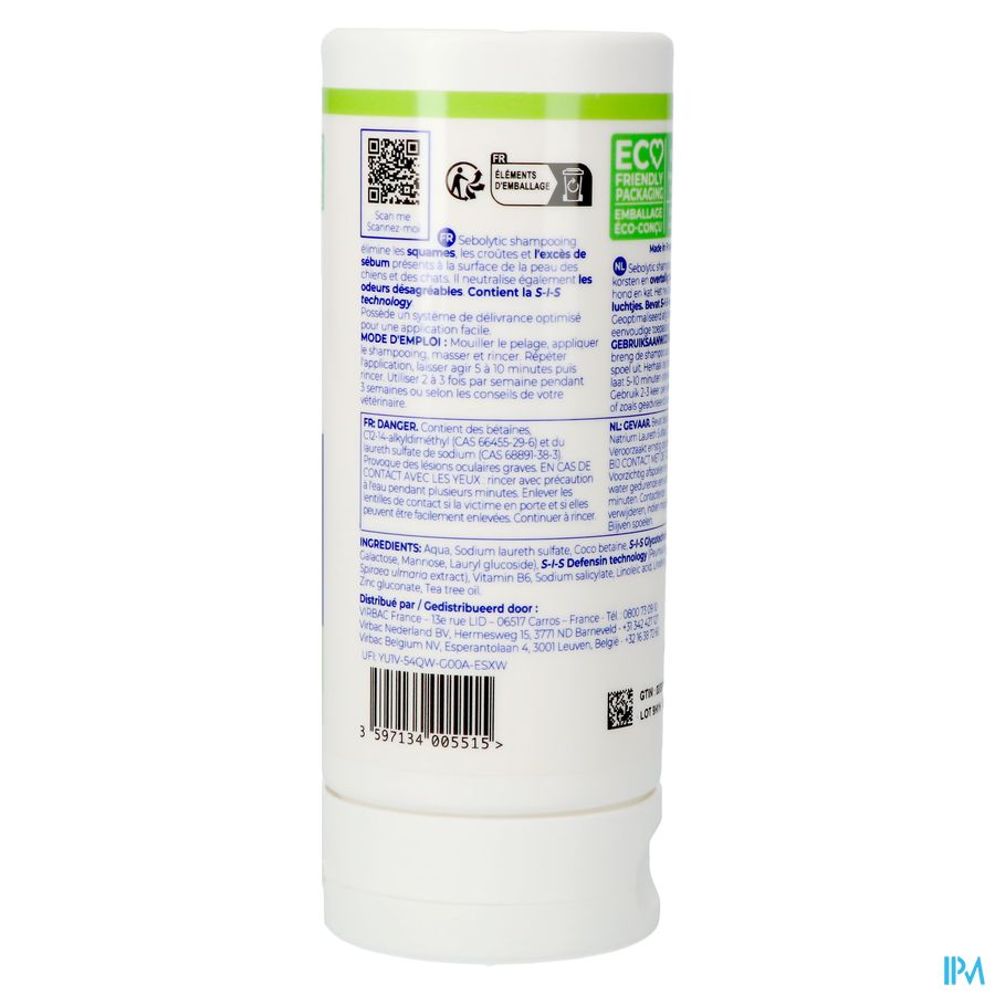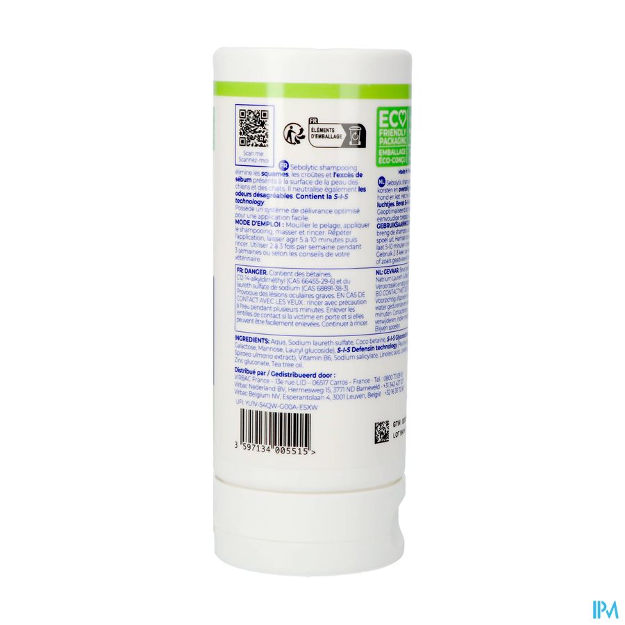 SEBOLITIC® is een shampoo zonder koolteer, speciaal ontwikkeld voor het gebruik bij huidproblemen van keratoseborroeïsche aard bij honden en katten. Het specifieke van SEBOLITIC® is de synergetische combinatie van keratolytische, anti-seborroeïsche en huidreinigende bestanddelen. Deze helpen bij de verwijdering van overtollige schilfers, de regulering van het keratinisatieproces (linolzuur en gamma linol), de regulering van de afscheidingsproducten (zinkgluconaat + vitamine B6 in vrije en ingekapselde vorm), alsook bij de controle van de natuurlijke microbiële flora van de huid (pirocton olamine) Voorts is er een verzachtende en anti-irriterende werking (essentiële Melaleuca olie). SEBOLITIC® bevat eveneens Spherulieten® en essentiële vetzuren. Spherulieten® zijn microscopisch kleine bolletjes, die de werkzame stoffen geleidelijk afgeven en daarmee voor een langdurige werkzaamheid zorgen. Speciaal geformuleerd om allergische reacties te voorkomen.