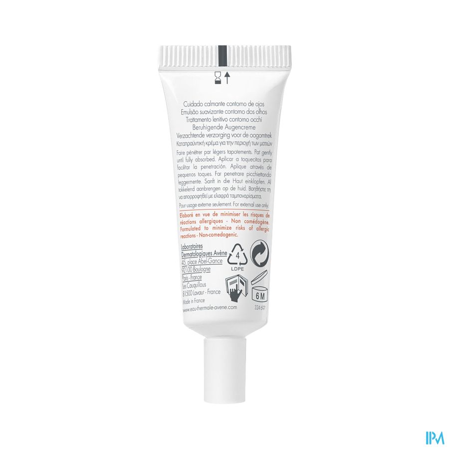 Deze oogcontourverzorging kalmeert deze gevoelige en kwetsbare zone en gaat een trekkerig gevoel en roodheid rond de ogen tegen. Het ontzwelt de gevoelige oogleden en geeft een kalmerend gevoel van lichtheid. De formule, verrijkt met hydraterende bestanddelen, beschermt de huid van de oogcontour en oogleden. De verzachtende oogcontourcrème is rijk aan Thermaal Water van Avène en vermindert irritatie. Niet geparfumeerd.
