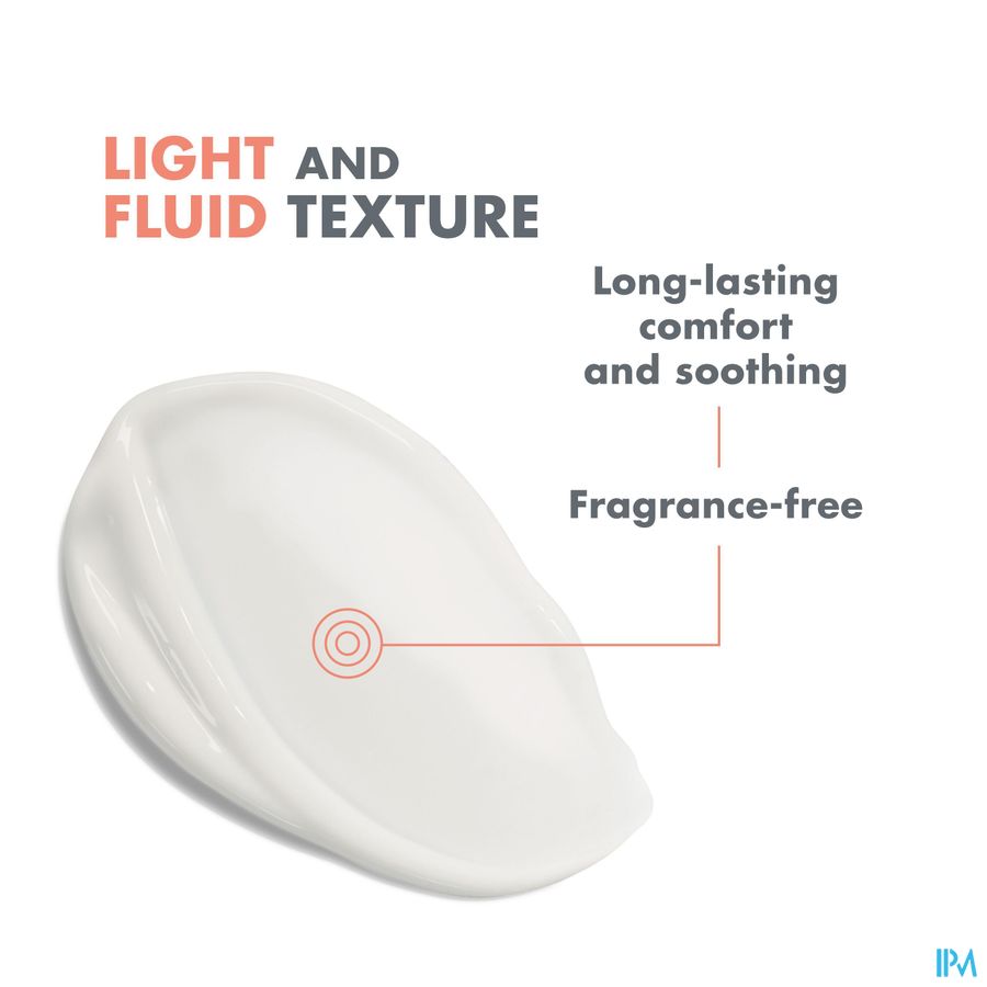 AVENE THERMAL SPRING WATER (AVENE AQUA). MINERAL OIL (PARAFFINUM LIQUIDUM). CAPRYLIC/CAPRIC TRIGLYCERIDE. CYCLOMETHICONE. GLYCERIN. SUCROSE STEARATE. PEG-12. SUCROSE DISTEARATE. TRIETHANOLAMINE. BATYL ALCOHOL. BISABOLOL. CAPRYLIC/CAPRIC GLYCERIDES. CARBOMER. DEXTRAN SULFATE. DISODIUM EDTA. SODIUM ACETATE. SODIUM HYALURONATE. TOCOPHERYL GLUCOSIDE