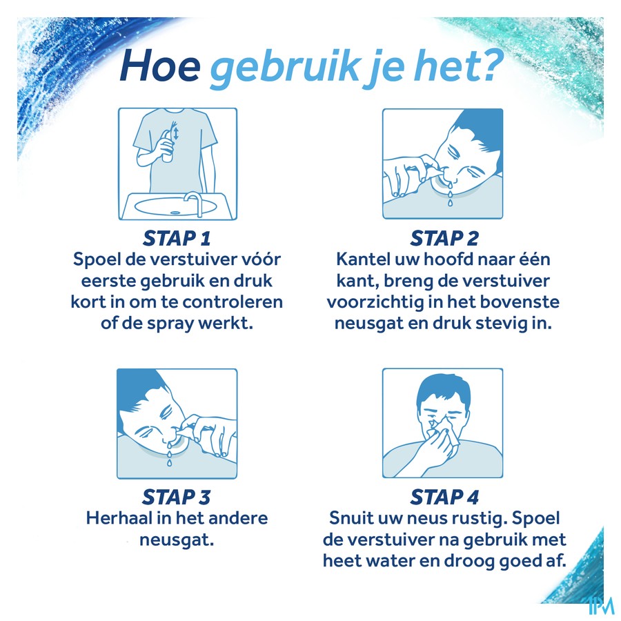 - 1 tot 2 keer per dag voor preventie en dagelijkse hygiëne Spoel de verstuiver schoon vóór het eerste gebruik.