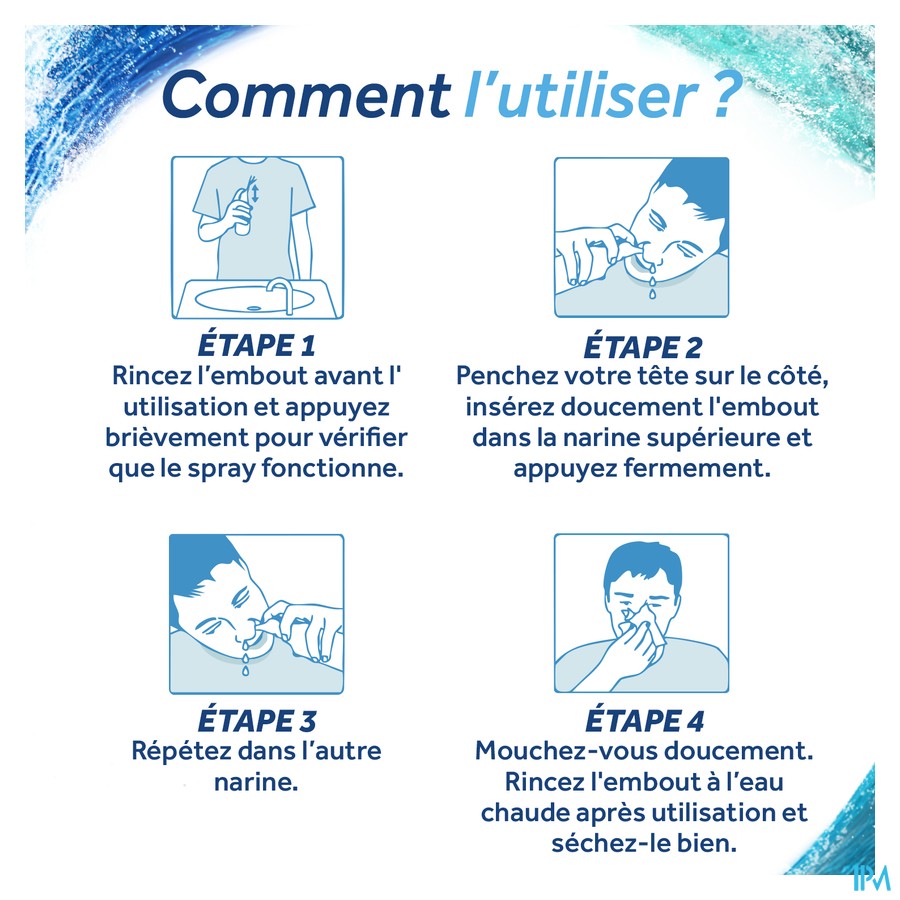 100% Maris aqua (isotoon zeewater, equivalent aan 9 g/l NaCl, onverdund, steriel en zonder bewaarmiddelen). Fabrikant: Laboratoire de la Mer