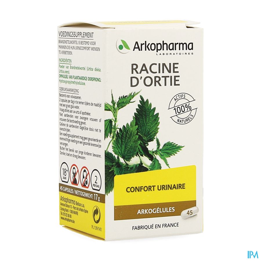 Arkocaps® Brandnetelwortel is een voedingssupplement. Brandnetelwortel is bestemd voor mannen die hun urinecomfort wensen te verbeteren.