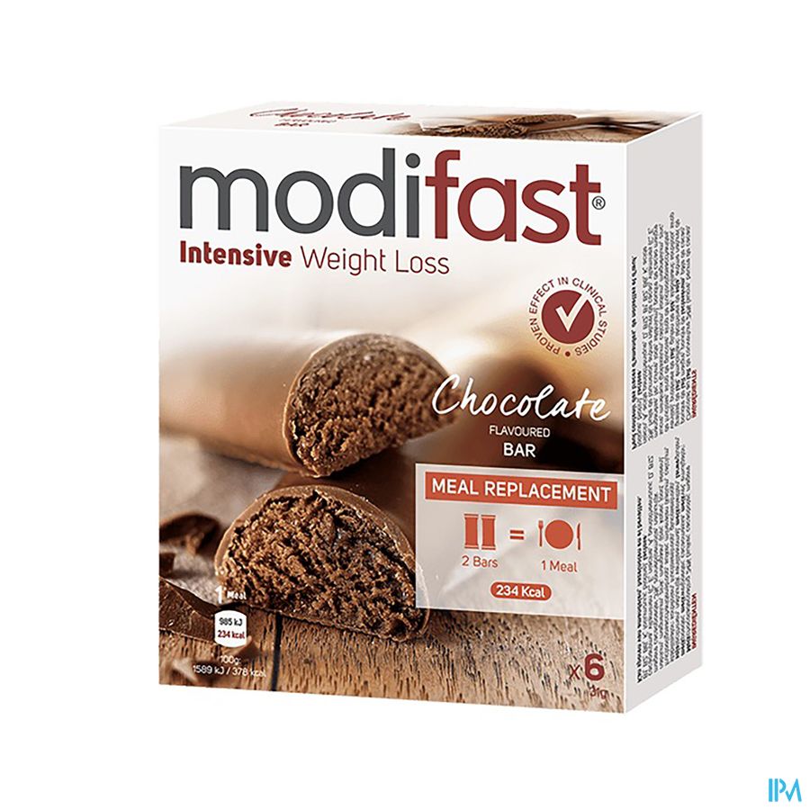 2 Modifast Intensive repen met melkchocolade smaak bevatten voldoende van alle essentiële voedingsstoffen om 1 hoofdmaaltijd op een dag mee te vervangen.