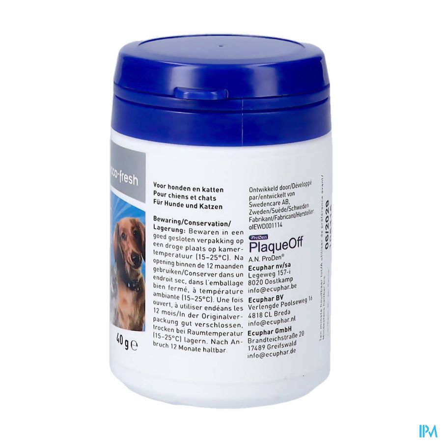 Orozyme Bucco Fresh PlaqueOff is een innovatie op het gebied van de verbetering van slechte adem en verbetering van de conditie van tandvlees en het gebit bij honden en katten. Orozyme Bucco Fresh PlaqueOff helpt het kleven van de tandplak voorkomen en weekt de aanslag los. Na enkele weken behandeling kunt u verbetering merken in conditie van de mond- en tandhygiëne van uw hond of kat.