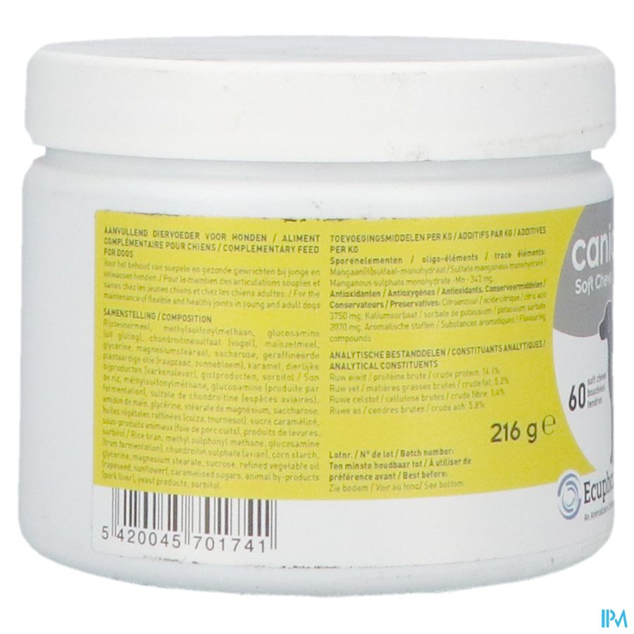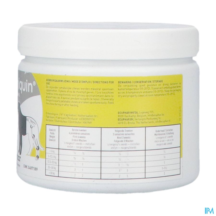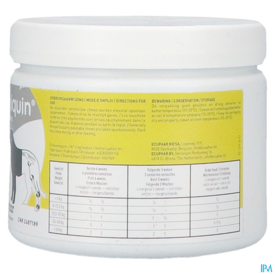 Deze zeer smakelijke snacks van [Caniquin op basis van glucosamine en chondroitinesulfaat ondersteunen de gewrichten. Bij honden met artrose vormen deze snacks een goede ondersteuning. Met name handig voor dieren die niet op een speciaal dieetvoer voor gewrichten kunnen door bijvoorbeeld een andere aandoening of allergie.