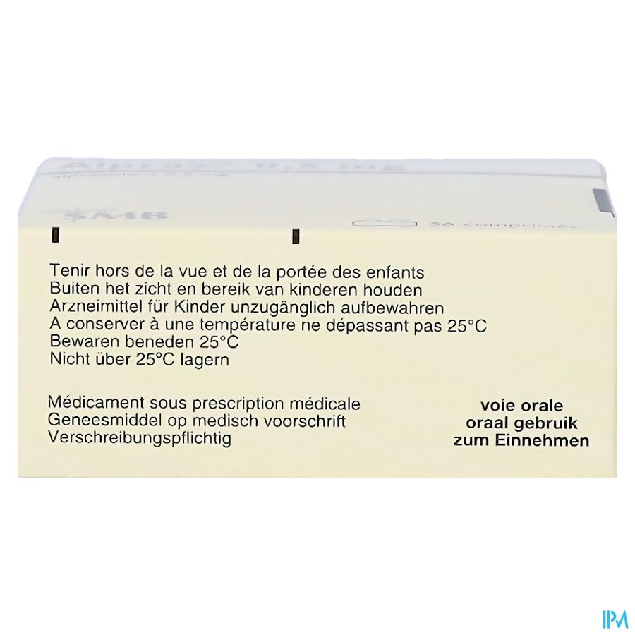• Begindosering: 0,25 tot 0,5 mg, 3 x /dag