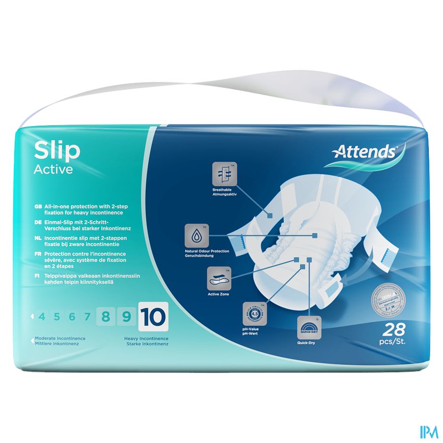Attends Slip Active is ontworpen voor de gebruiker die een actief leven leiden en toch behoefte hebben aan een optimaal beschermend product bij zware incontinentie. Door de speciale fixatie en pasvorm is het product nauwelijks waarneembaar onder normale kleding doordat de slip perfect aansluit op het lichaam.