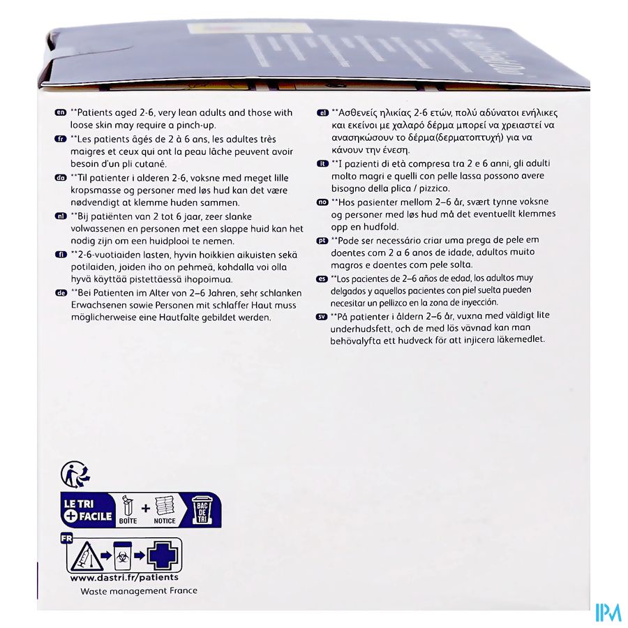 - De kortste veiligheidspennaald op de markt: vermindert het risico op intramusculaire injecties kan bij alle mensen met diabetes gebruikt worden eenvoudige injectietechniek: loodrecht, zonder huidplooi *