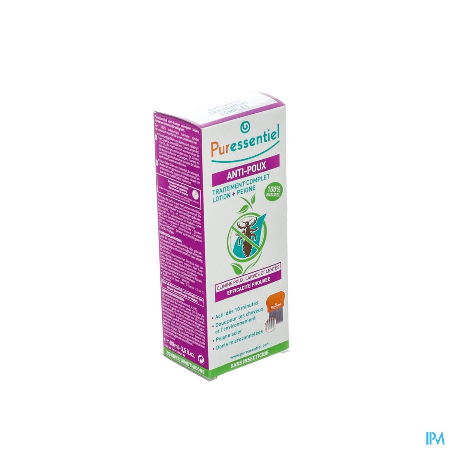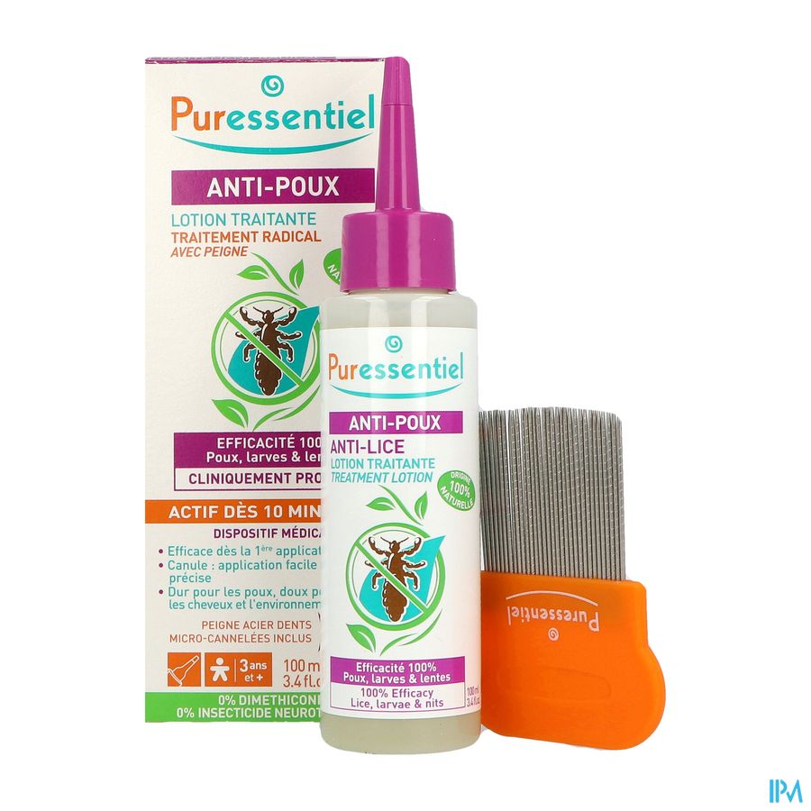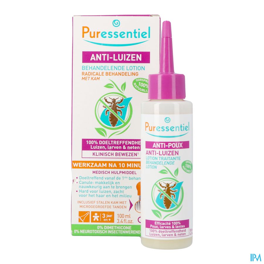 Puressentiel Tegen Luizen verwijdert radicaal luizen, larven en neten in 10 minuten en in alle veiligheid. Zijn 100 % natuurlijke formule zonder neurotoxisch insecticide is een combinatie van: