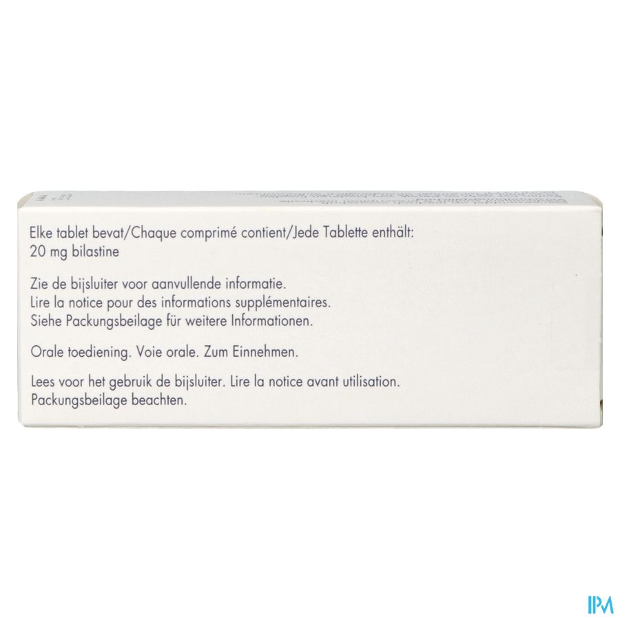 De werkzame stof in dit middel is bilastine. Elke tablet bevat 20 mg bilastine.