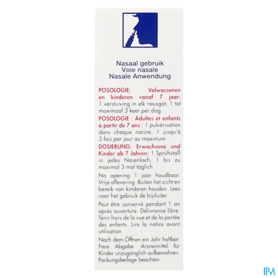 Gebruik Nasasinuspray sine conservans volgens de behoefte door 1 verstuiving in elk neusgat toe te dienen, 1 tot 3 keer per dag.