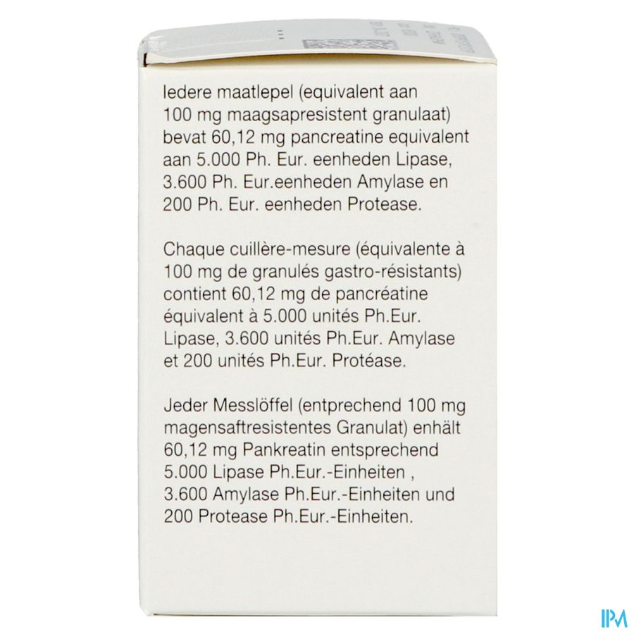 - Bijgeleverde maatlepel = 100 mg granulaat = 5.000 E. lipase.