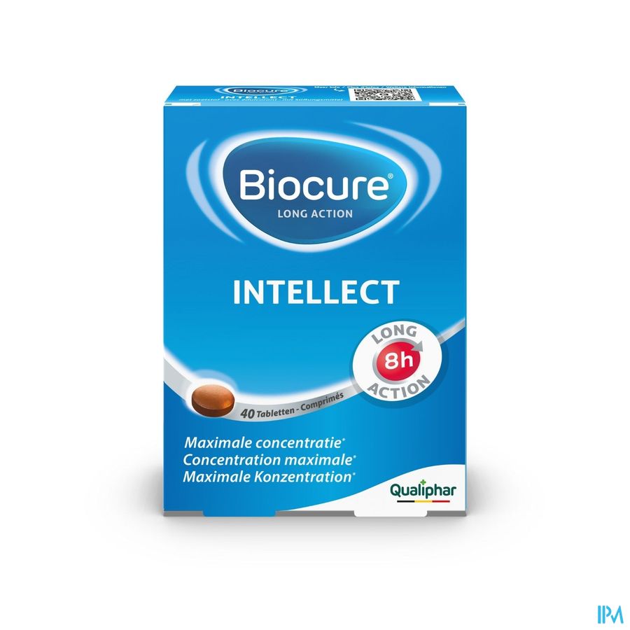 Biocure® Long Action Intellect bevat ijzer, twee belangrijke B-vitamines (B3 en B6), Siberische ginseng (Eleutherococcus senticosus) en guarana (Paulinia cupana). Een combinatie voor doorzetters. IJzer helpt bij het verminderen van vermoeidheid en ondersteunt een normale verstandelijke (cognitieve) functie, zoals geheugen en concentratie. Guarana is een plant die reeds bij de Indianen gekend was. Siberische ginseng is een adaptogeen. Adaptogenen zijn stoffen die het lichaam in evenwicht houden, zelfs onder stressvolle omstandigheden. Siberische ginseng werkt daarom als stressbuffer bij kortstondige stress. Vitamine B3 en B6 dragen bij tot het normaal functioneren van het zenuwstelsel. Biocure® Long Action Intellect is een Long Action formule. Dit wil zeggen dat alle actieve stoffen geleidelijk in het lichaam terechtkomen waar deze langzaam opgenomen worden. Deze unieke formule zorgt tegelijk voor een onmiddellijke werking. Biocure® Long Action Intellect werkt daarom snel, krachtig en langdurig. Biocure® Long Action Intellect bevat twee gestandaardiseerde planten: Siberische ginseng en guarana. Door standaardisering van planten wordt per dosering steeds dezelfde hoeveelheid plantenmateriaal toegediend. Dit ondersteunt de goede werking van Biocure® Long Action Intellect.