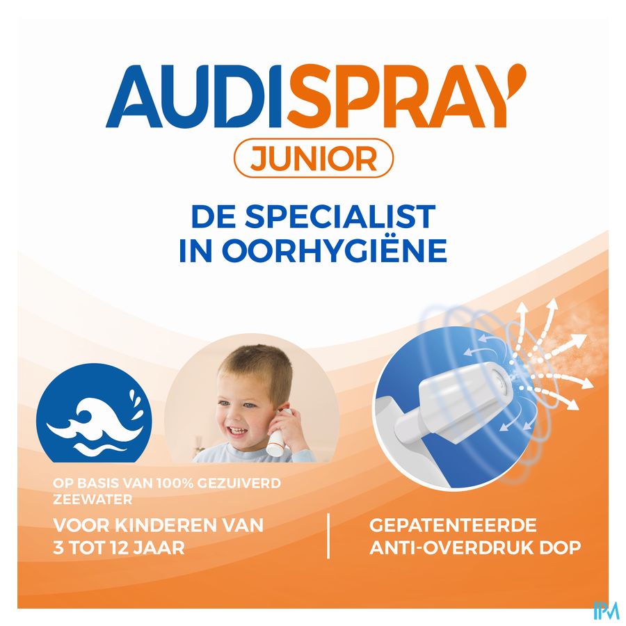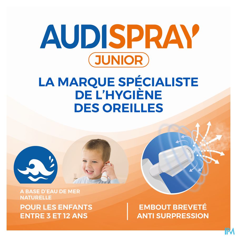 Bij regelmatig gebruik waarborgt Audispray Junior een perfecte oorhygiëne en voorkomt het de vorming van oorsmeerproppen. Een alternatief voor wattenstaafjes.