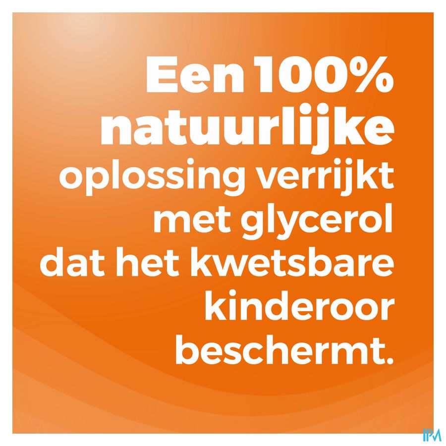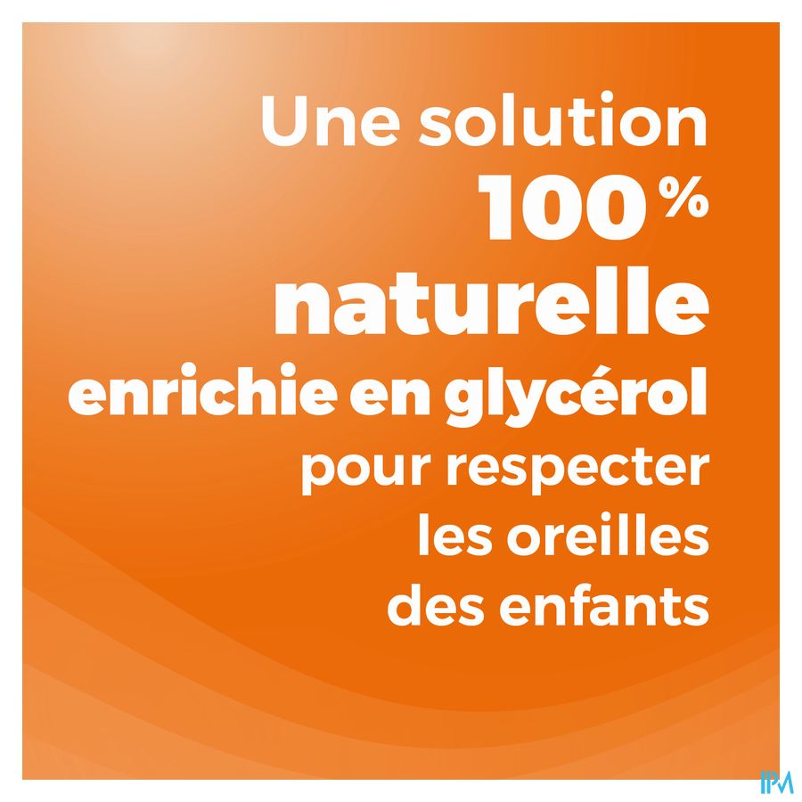Het product bestaat uit microbiologisch gecontroleerd zeewater en glycerol. Dit bestanddeel verzacht de huid van de gehoorgang en beschermt de kwetsbare oren van kinderen. Een oplossing die aangepast is aan de gevoeligheid van de gehoorgang van kinderen dankzij de aanwezigheid van glycerol in het product.