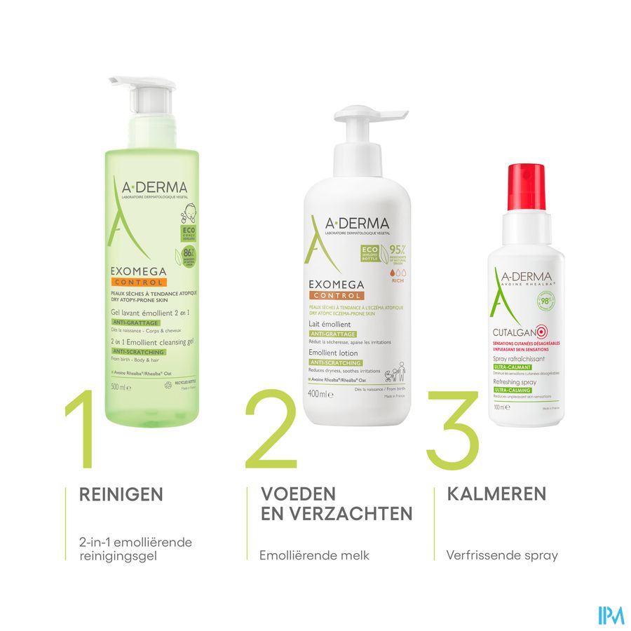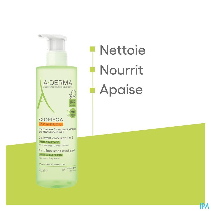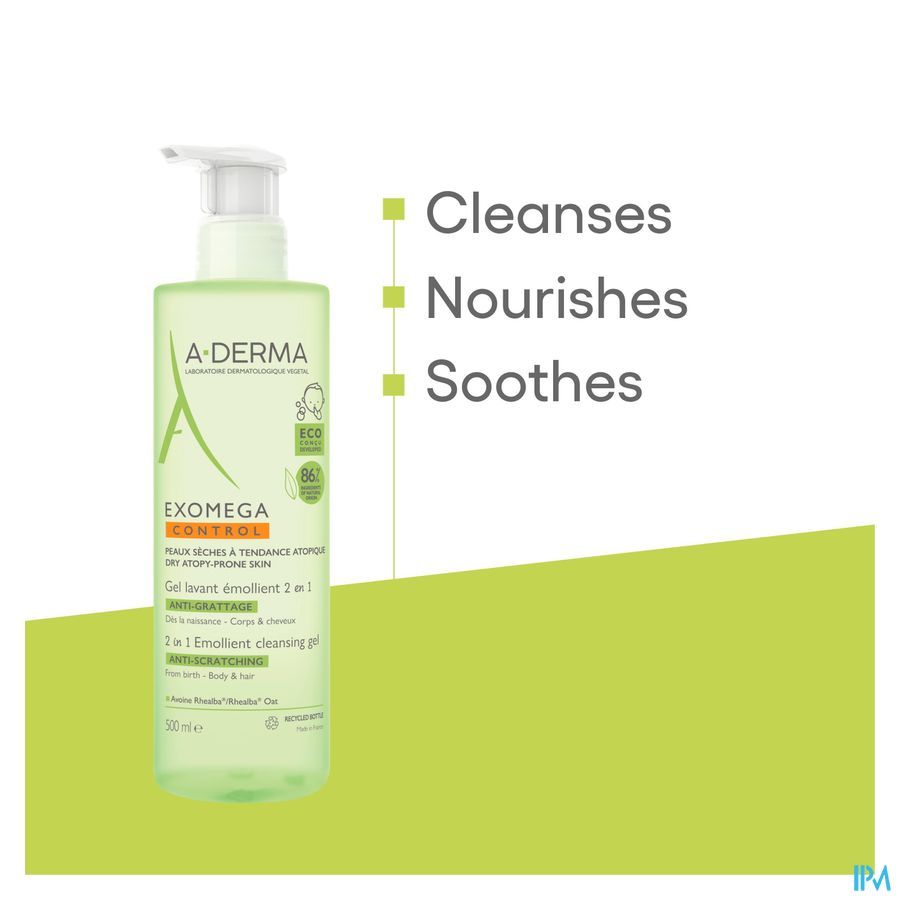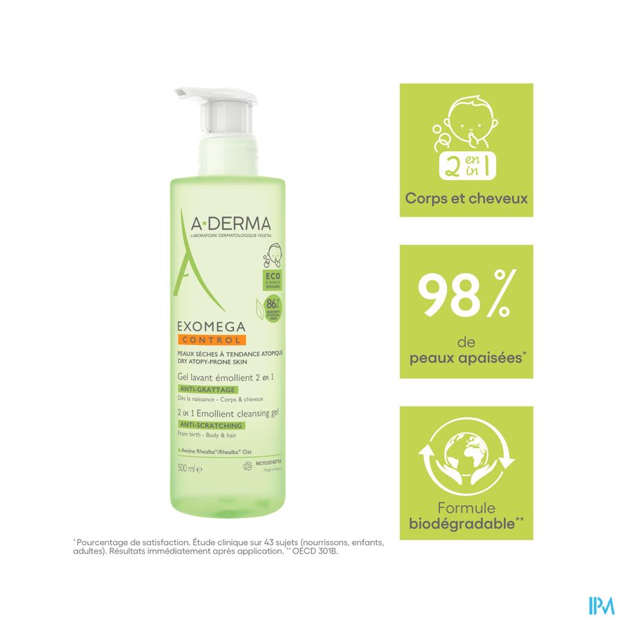 Het plantaardig dermatologisch laboratorium A-DERMA heeft EXOMEGA CONTROL 2-IN-1 EMOLLIËRENDE WASGEL samengesteld, de zachte bondgenoot voor de hygiëne van kinderen met een droge huid met neiging tot atopisch eczeem, vanaf de geboorte. In één enkele beweging reinigt deze milde, licht schuimende gel het lichaam en het haar, verzacht en beschermt de fragiele huid en hoofdhuid. Dankzij de actieve bestanddelen die streng werden geselecteerd om hun verzachtende en kalmerende eigenschappen, reinigt en hydrateert EXOMEGA CONTROL EMOLLIËRENDE WASGEL de huid en verzacht irritaties. De BIOLOGISCH AFBREEKBARE* formule, met 86% ingrediënten van natuurlijke oorsprong, is getest onder oftalmologisch, dermatologisch en pediatrisch toezicht en kan gebruikt worden vanaf de geboorte. EXOMEGA CONTROL 2-IN-1 EMOLLIËRENDE WASGEL is praktisch en maakt het leven van ouders gemakkelijker door de huid en het haar van kinderen te hullen in zachtheid en kalmerende eigenschappen.* Volgens de OESO-norm 301B