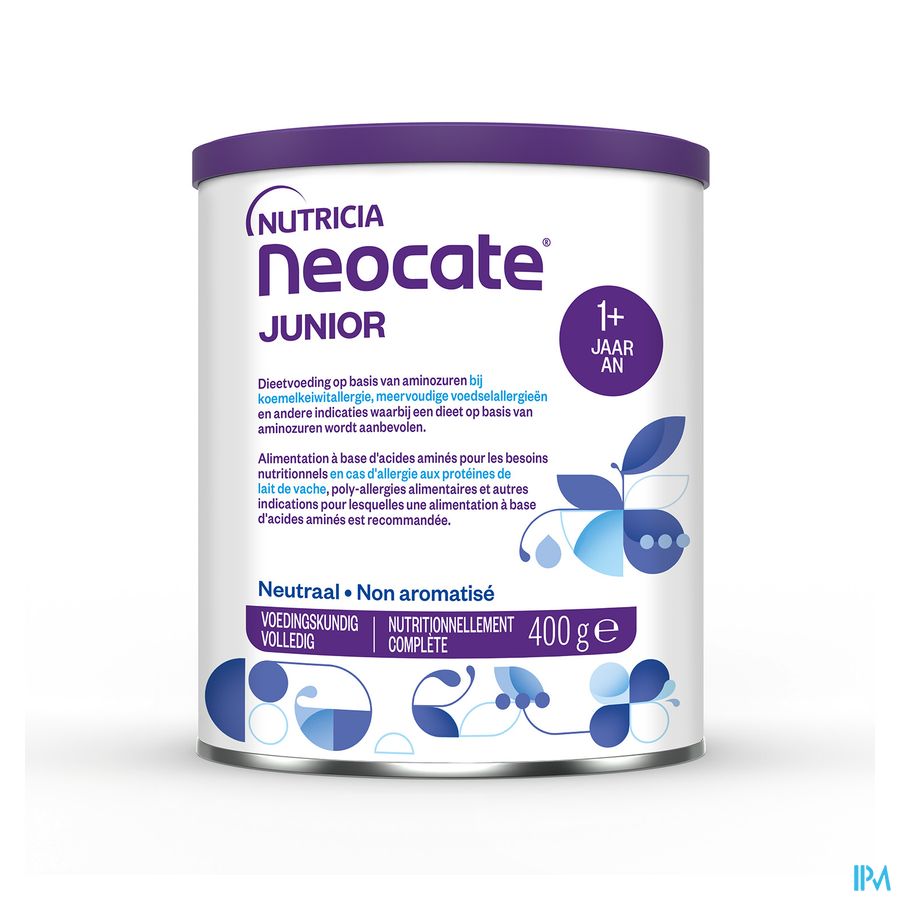 Neocate Junior is een voeding voor medisch gebruik. Dieetvoeding voor kinderen bij koemelkallergie, meervoudige voedselallergie of andere indicaties waarbij een elementair dieet wordt aanbevolen. Neocate Junior is gemaakt op basis van vrije aminozuren. Aminozuren zijn de bouwstenen van eiwit, alleen het afweersysteem kan niet reageren op deze aminozuren omdat ze te klein zijn. Het is geproduceerd in een koemelkeiwitvrije omgeving. Uitsluitend te gebruiken onder medisch toezicht, na alle voedingsopties te hebben overwogen, met inbegrip van borstvoeding.