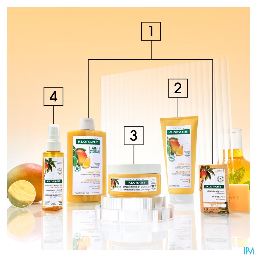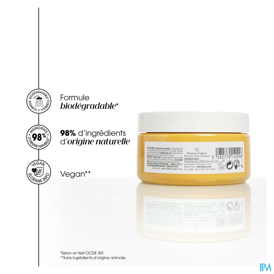 • Intens voedend: mangoboter bevat een hoog gehalte aan essentiële vetzuren die de haarschacht herstructureren en het haar intens te voeden zonder het te verzwaren. • Herstelt: herstelt de glans, respecteert haarkleuringen en helpt droog haar te herstellen. • Beschermt: de formule strijkt de haarvezel glad en maakt zo het haar bestendiger tegen schadelijke invloeden van buitenaf.