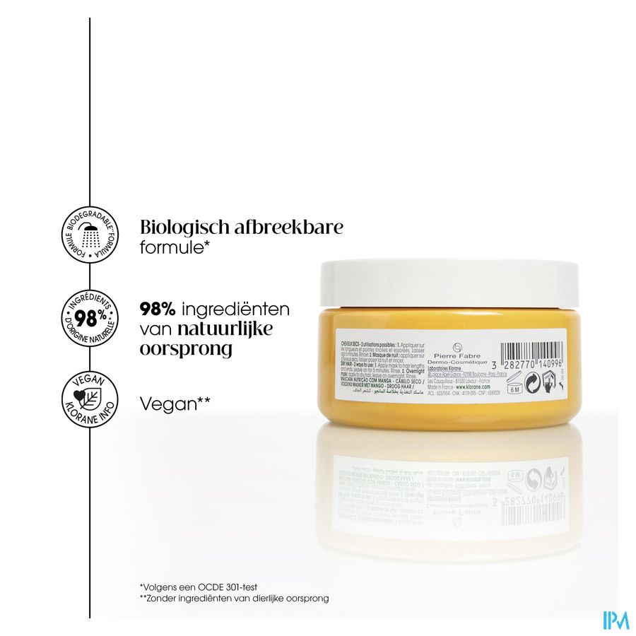 Het Voedend Masker met Mango verzorgt droog haar. De smeuïge mangoboter, geëxtraheerd door koude persing van de pit van de sappige vrucht, is rijk aan essentiële vetzuren met voedende en beschermende eigenschappen. Het masker biedt een langdurige en diepgaande voeding van verzwakt haar, zonder het te verzwaren. Het herstelt de haarvezel en revitaliseert het haar, waardoor het zacht en soepel aanvoelt. Dankzij de intens voedende, royale formule zijn de lengten en punten minder beschadigd en tegelijk beter beschermd tegen schadelijke invloeden van buitenaf. Gebruik ten minste tweemaal per week als een deep conditioner, of vaker als het haar erg droog is.