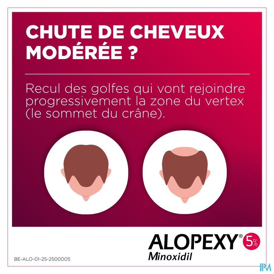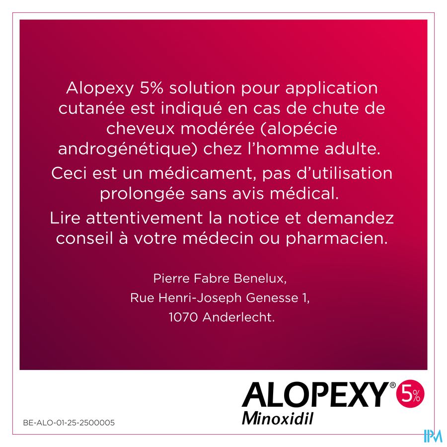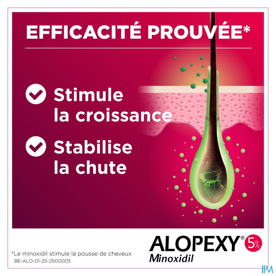 Alopexy is een oplossing voor cutaan gebruik met als actief bestanddeel minoxidil dat haargroei stimuleert.