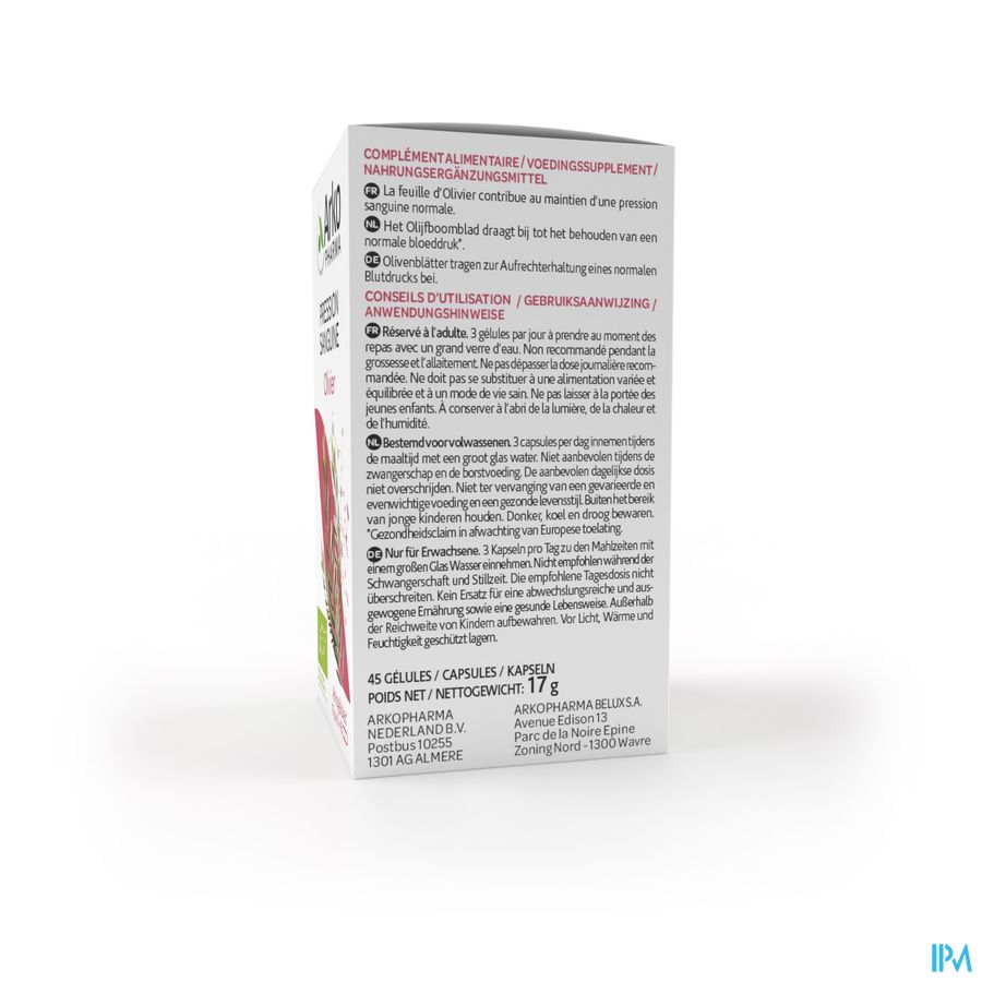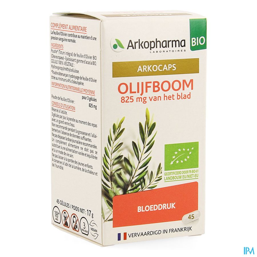 Arkocapsules® Olijfboom ist een voedingssupplement, speciaal geformuleerd voor personen die een normale bloeddruk wensen te behouden.Dankzij zijn unieke savoir-faire, restitueert Arkopharma 100% van de werkzame bestanddelen van Olijfboom, die in synergie werken met het grootste respect voor uw lichaam.