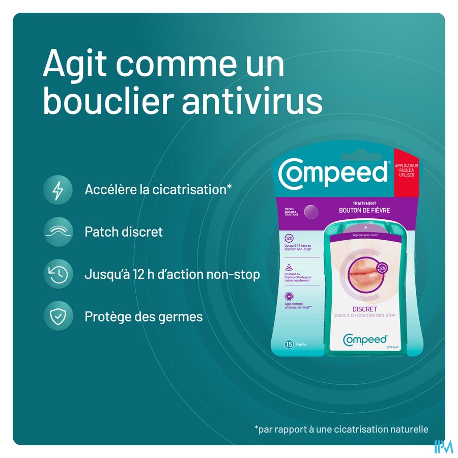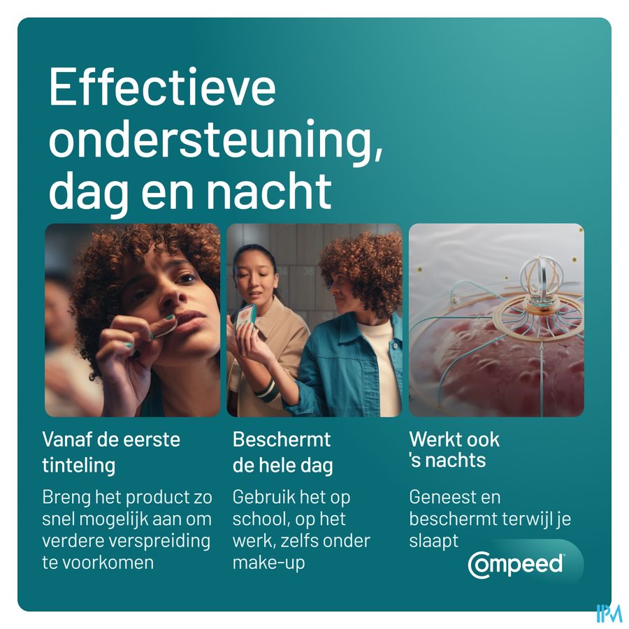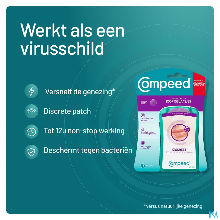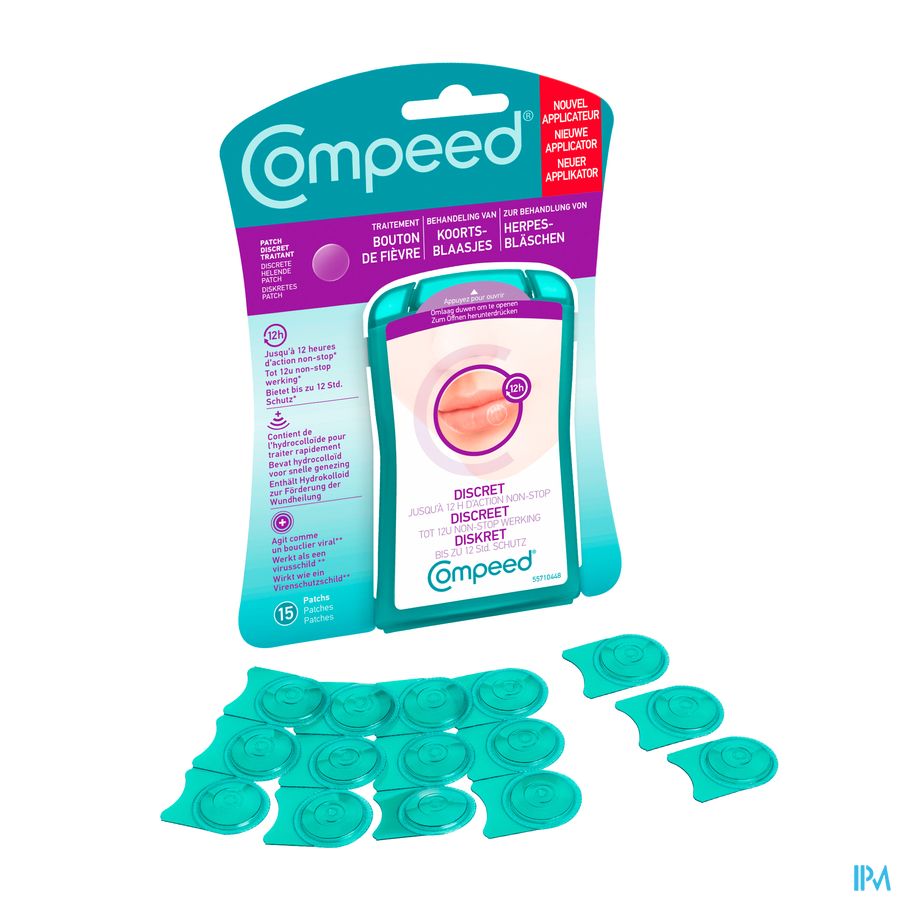 Met Compeed® Patch voor Koortsblaasjes kunnen koortsblaren op een snelle manier behandeld worden en genezen ze sneller. De patches vormen een virusschild en helpen om een nieuwe besmetting via het letsel te voorkomen. Ze zorgen er bovendien voor dat de koortsblaar niet erger wordt, door de koortsblaar te beschermen tegen contact met de omgeving.