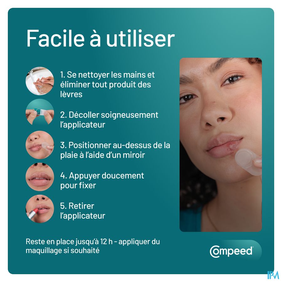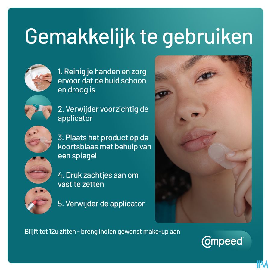 - Kan gebruikt worden in combinatie met make-up. Make-up of lipstick kan over de patch worden aangebracht.