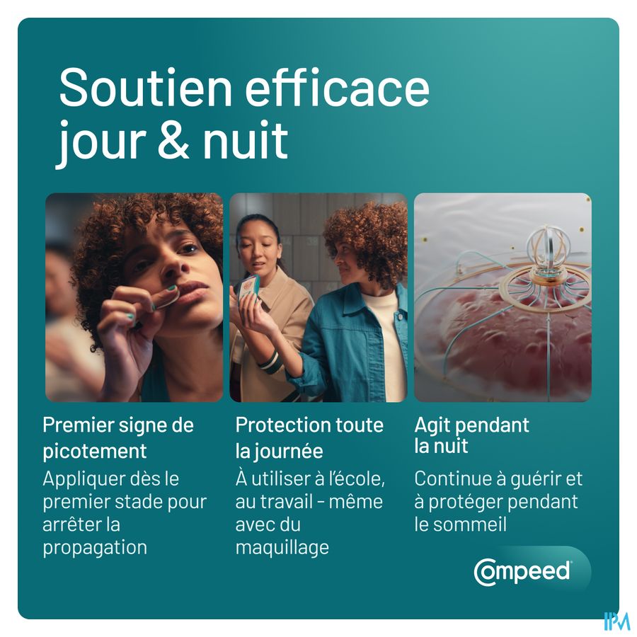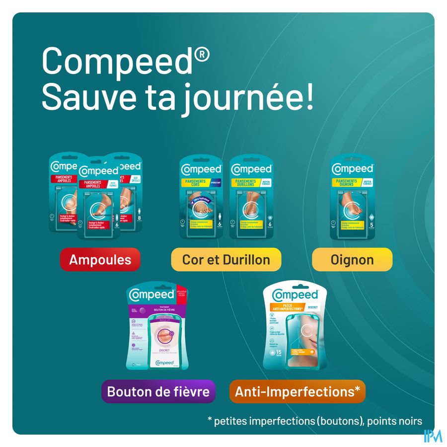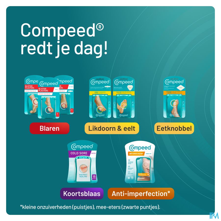 - Ultradun membraan zodat Compeed® meebeweegt en tot 12 uur* op zijn plaats blijft zitten.