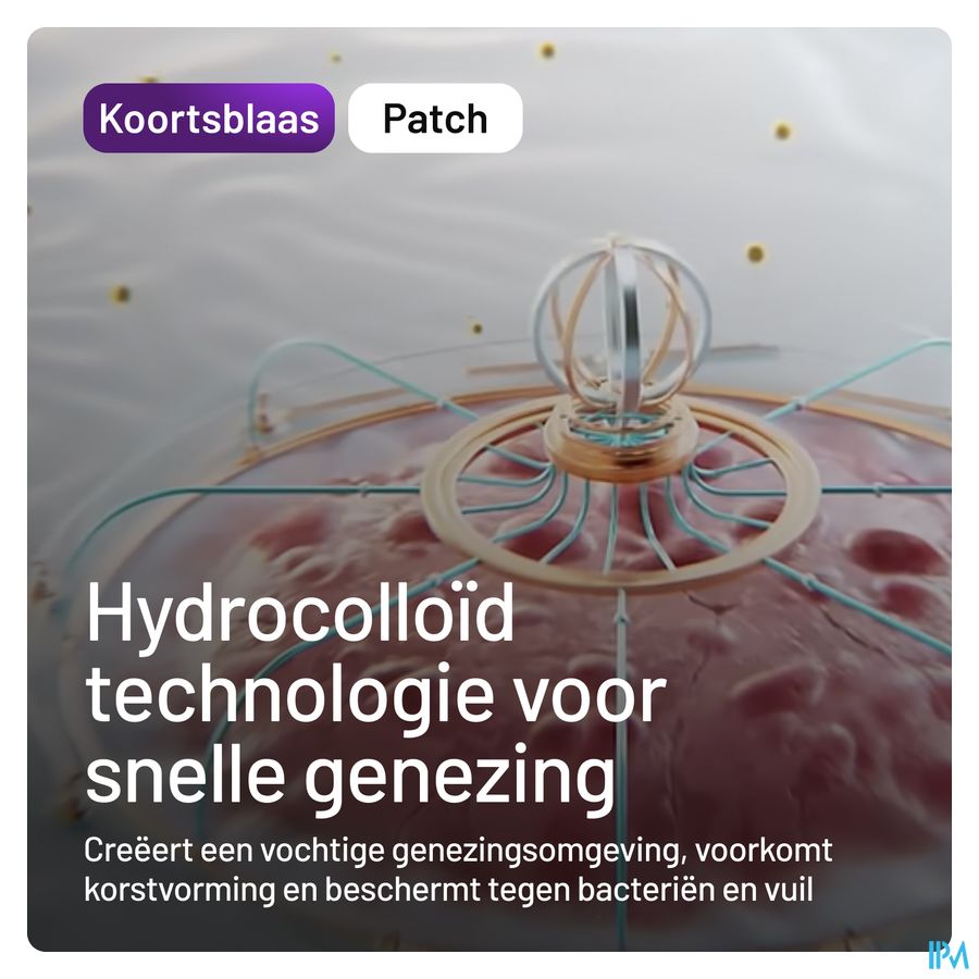 - De ultradunne hydrocolloïdgel absorbeert het overtollig vocht uit het koortsblaasje en behoudt een optimale vochtigheidsgraad voor een snelle genezing.