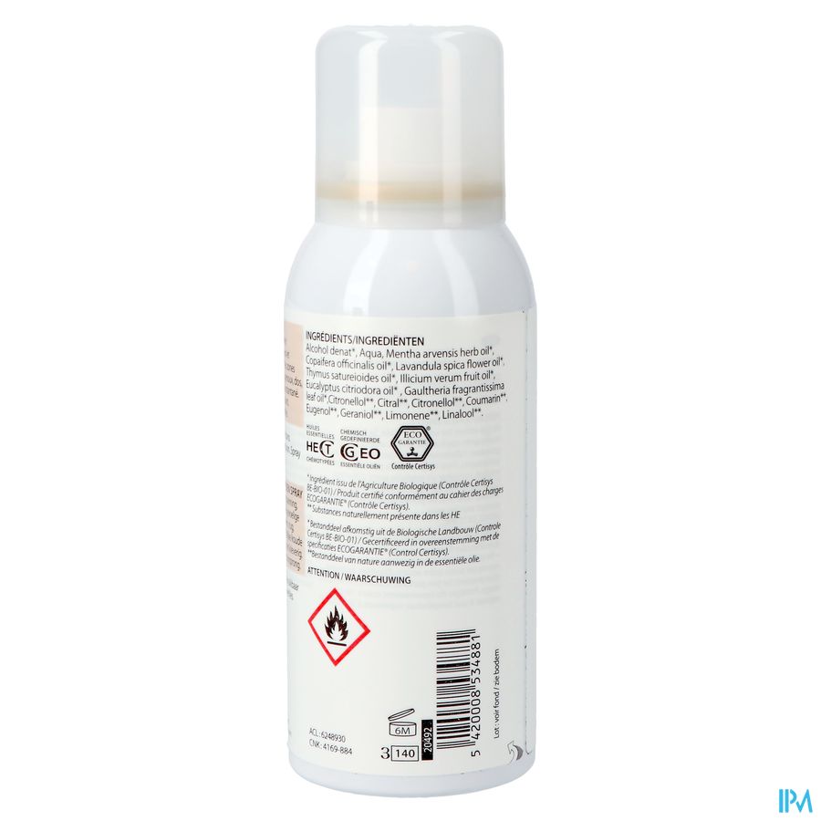Alcohol denat*, Aqua, Mentha arvensis herb oil*, Copaifera officinalis oil*, Lavandula spica flower oil*, Thymus satureioides oil*, Illicium verum fruit oil*, Eucalyptus citriodora oil* , Gaultheria fragrantissima leaf oil*,Citronellol**, Citral**, Citronellol**, Coumarin**, Eugenol**, Geraniol**, Limonene**, Linalool**.