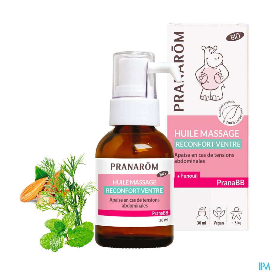 De massageolie Buik Comfort is speciaal aangepast voor een comfortabele babymassage tijdens de spijsvertering: het kalmeert en verlicht de buikspanning; verrijkt met essentiële oliën van Venkel, Gember, Zoete Sinaasappel en Groene Munt, bevordert De massageolie Buik Comfort het welzijn van de kleintjes tijdens de spijsvertering terwijl de plantaardige oliën van Kokos, Zoete Amandel en Zonnebloem de gevoelige huid van baby voedt en beschermt.