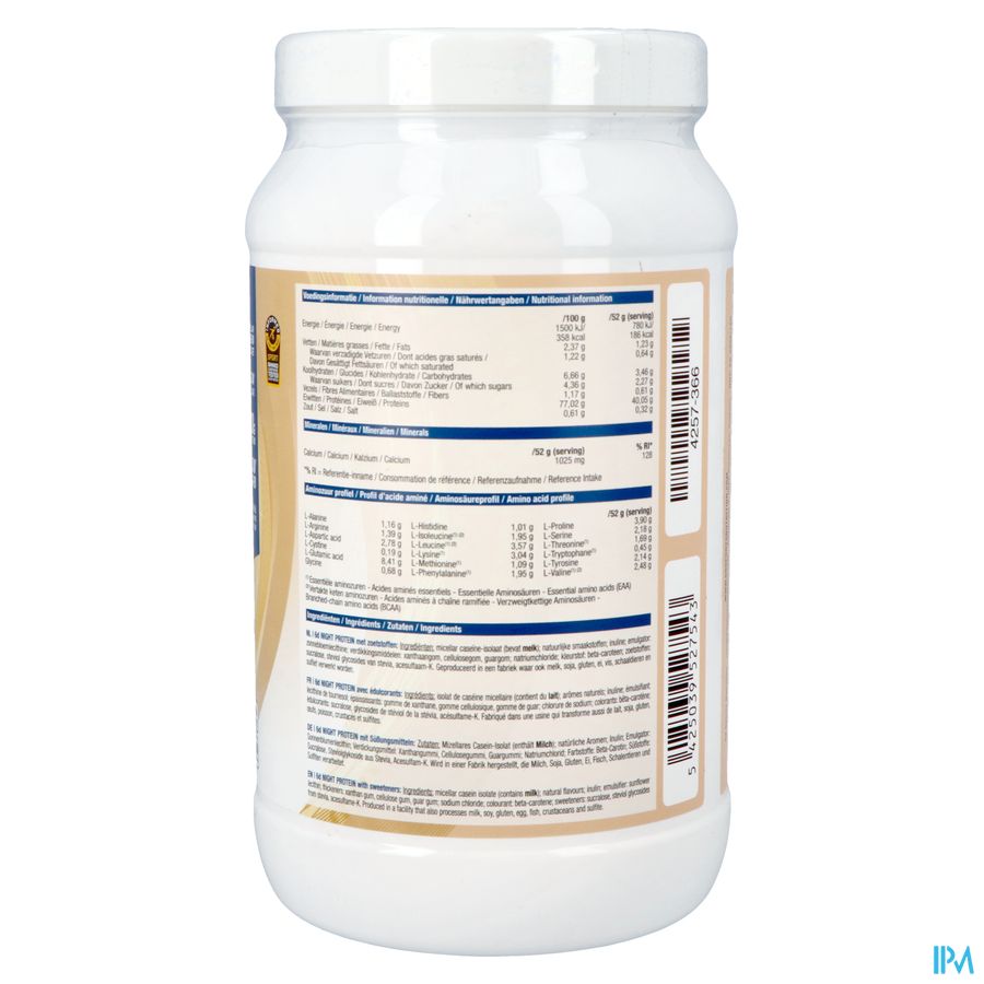 micellar caseïne-isolaat (bevat melk, emulgator: zonnebloemlecithine); natuurlijke smaakstoffen; inuline; verdikkingsmiddelen: xanthaangom, cellulosegom, guargom; natriumchloride; kleurstof: beta-caroteen; zoetstoffen: sucralose,steviolglycosiden, acesulfaam-K. Kan sporen van gluten, ei, pinda"s en verschillende soorten noten bevatten.
