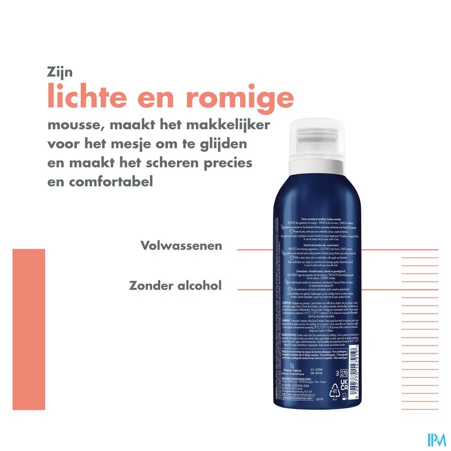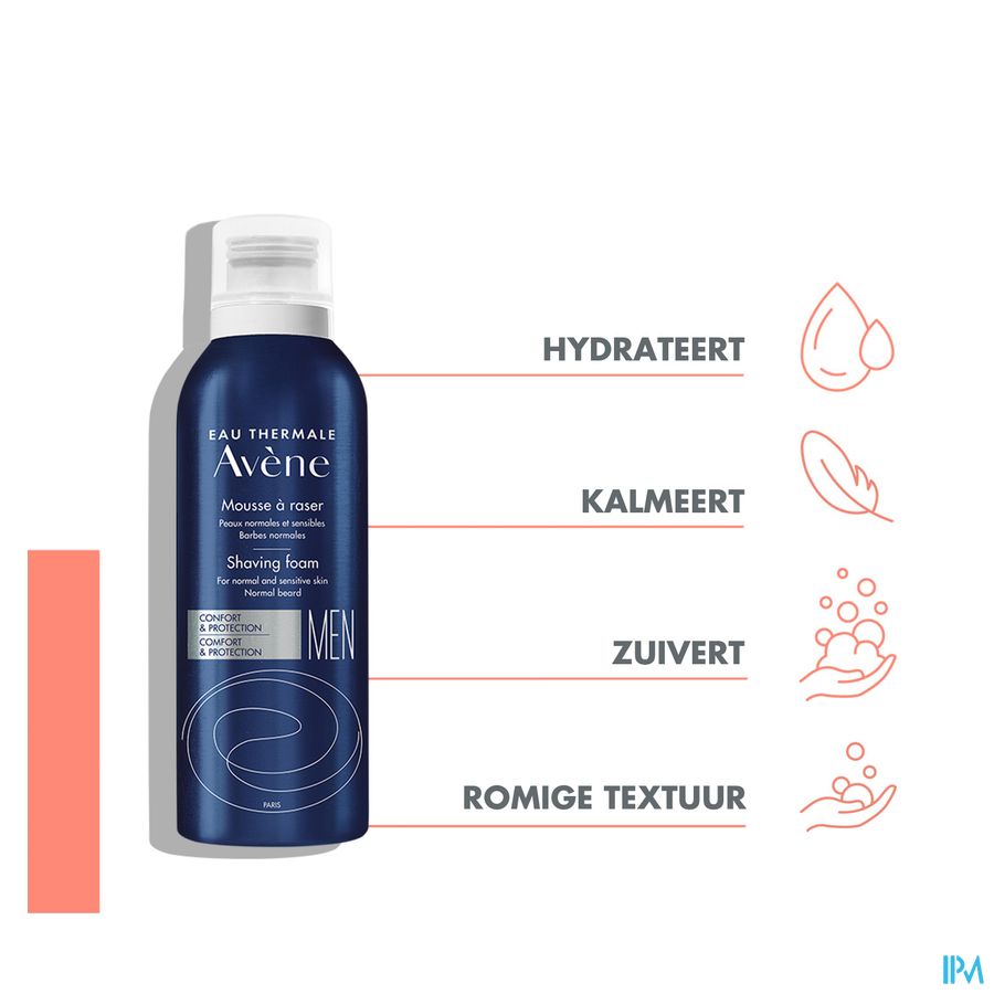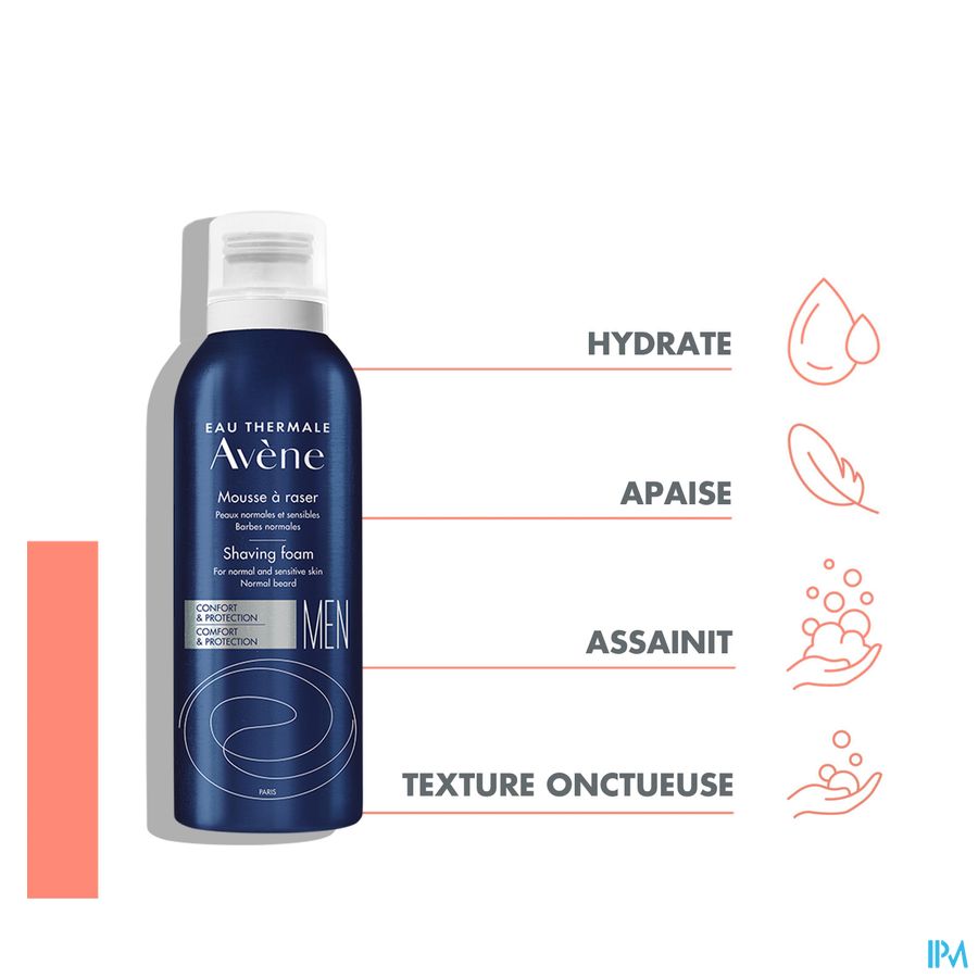 Dit scheerschuim, een dagelijks verzorgingsproduct, hydrateert, verzacht en geeft een werkelijk comfortabel gevoel, dankzij de combinatie van thermaal water van Avène met verzachtende en anti-irriterende eigenschappen, en een hydraterend bestanddeel (glycerine). Het is licht en glad en zorgt ervoor dat het mesje gemakkelijker over de huid glijdt voor een comfortabeler scheerresultaat. Het ontsmet en vermindert het risico op bacteriën als gevolg van microscopisch kleine snijwondjes, terwijl het de huid beschermt tegen de agressies van het scheren. Alcoholvrij en lichtjes geparfumeerd.