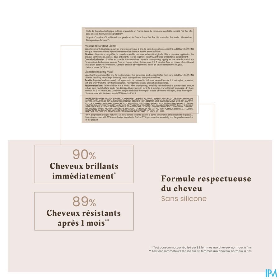 Plantaardige, extreem geconcentreerde keratinemasker helpt fijn, beschadigd haar te herstellen.