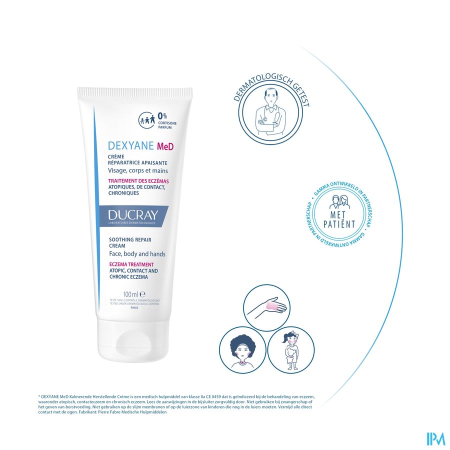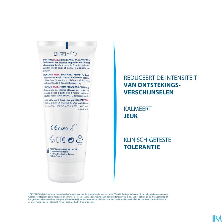 *DEXYANE MeD Herstellende verzachtende crème is een medisch hulpmiddel van klasse CE. Lees de bijgeleverde bijsluiter zorgvuldig. Niet gebruiken tijdens zwangerschap of borstvoeding. Niet gebruiken op de slijmvliezen of op de luierstreek van kinderen die nog een luier dragen. Vermijd elk direct contact met de ogen. Vanaf 3 maanden. Fabrikant : Pierre Fabre Medicament.