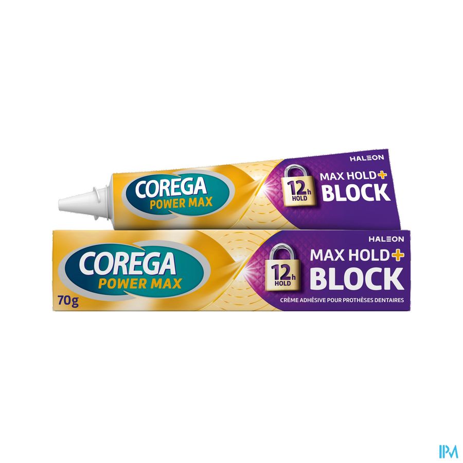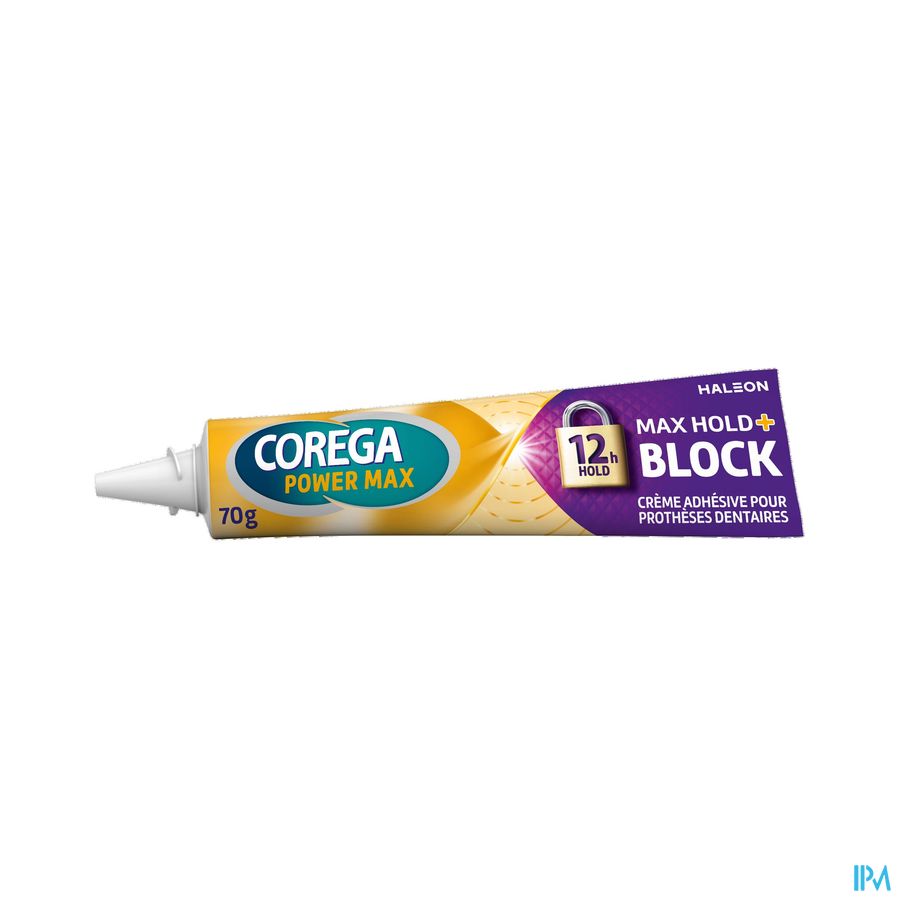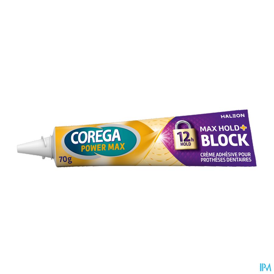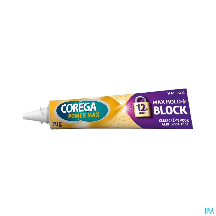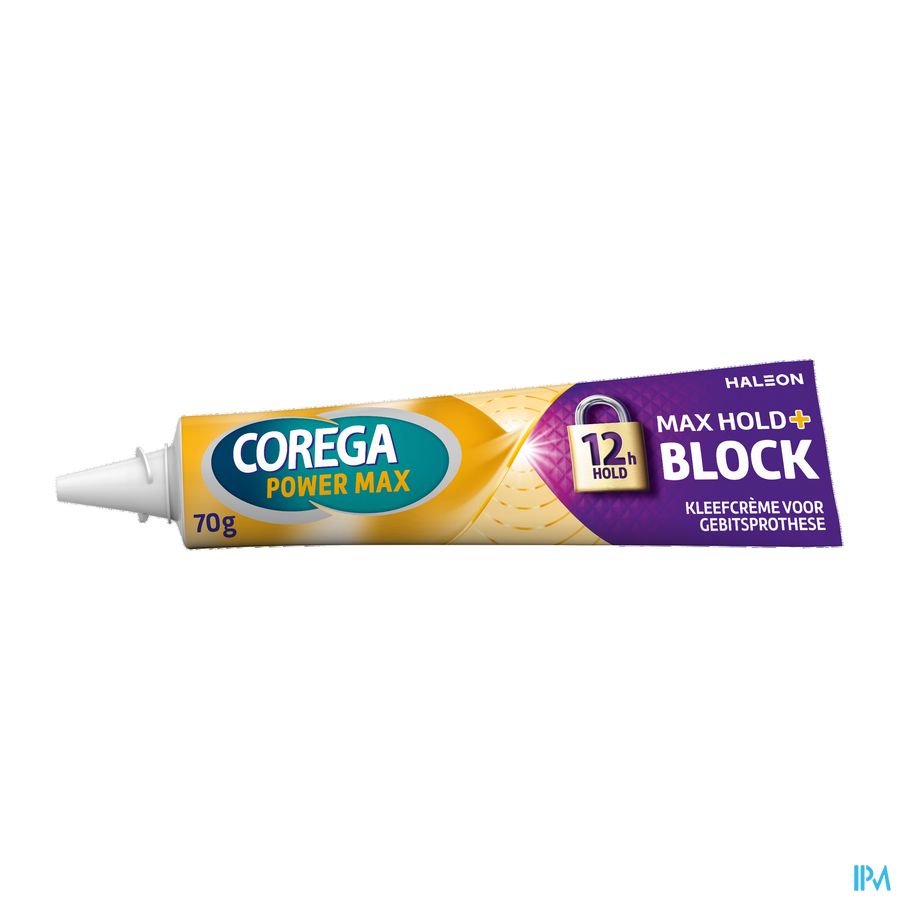 Aanbrengen: 1. Reinig uw gebitsprothese en droog deze af. 2. Breng het product aan in korte strepen zoals afgebeeld, niet te dicht bij de randen van uw prothese. 3. Spoel uwmond. 4. Druk de prothese op zijn plaats, goed vasthouden en bijt enkele seconden omde prothese stevig vast te zetten. Verwijderen: 1. Spoel uwmond met warmwater. 2. Verwijder dan voorzichtig de gebitsprothese. 3. Verwijder restanten van het kleefmiddel van de gebitsprothese en uit uwmond met warmwater en een zachte borstel. 4. Gebruik een Corega reiniger om uw gebitsprothese grondig te reinigen en spoel dan met water.