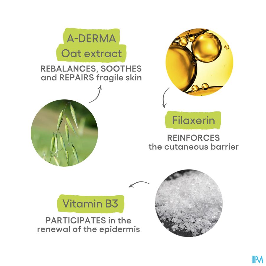 • DRIEVOUDIGE VERZACHTENDE WERKING dankzij Rhealba® Haverplantextract versterkt door BIOVECT, een natuurlijke vector: kalmeert de jeuk, vermindert roodheid en spreidt irritatiepieken. • VOEDING: maakt de huid minder droog en versterkt de huidbarrière dankzij Filaxerin, Vitamine B3 en de verzachtende kern van de formule. • MICROBIOOM: Rhealba® Haverplantextract helpt het microbioom weer in balans te brengen