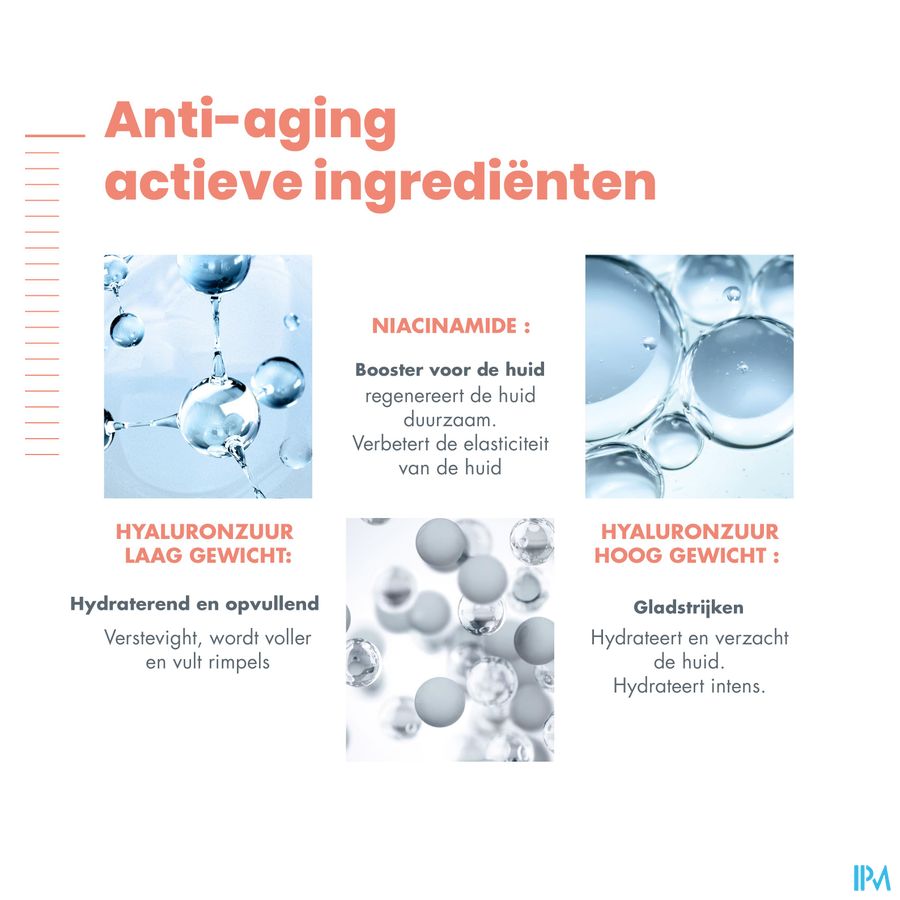 • Onmiddellijk VERSTRAKKEND EFFECT dankzij de zeer hoge concentratie hyaluronzuur (1,5 %) • Laat de huid er na 4 uur VOLLER uitzien** • CORRIGEERT rimpels na 15 dagen**
