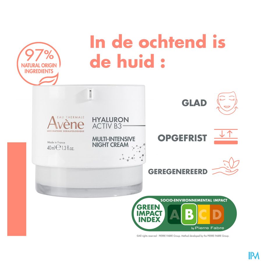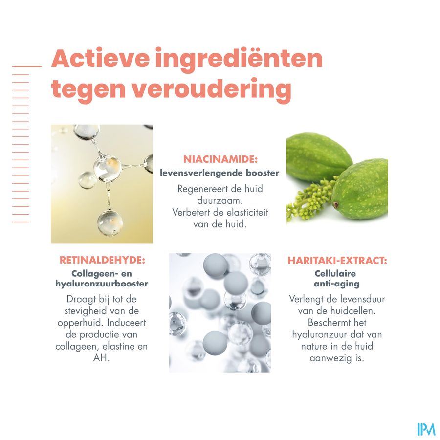 Multi-intensieve nachtcrème is een complete herstellende verzorging met 4 actieve bestanddelen: Retinal, niacinamide, hyaluronzuur, Haritaki. Deze herstellende nachtcrème stimuleert de aanmaak van cellen en verlengt hun levensduur *: dit bevordert langdurig het huideigen celvernieuwingsproces. Vanaf 15 dagen: de huid is bij het ontwaken gladder**. Na 15 dagen ziet de huid er steviger uit** Getest op alle huidtypes. Formule die voor 97% uit bestanddelen van natuurlijke oorsprong bestaat.