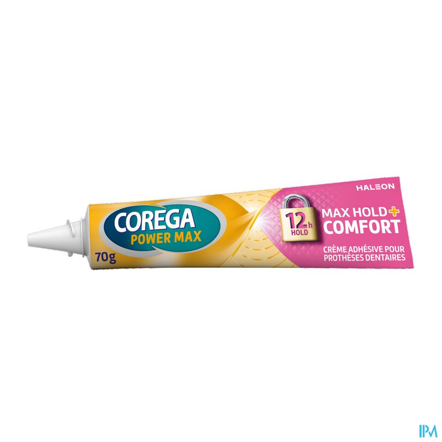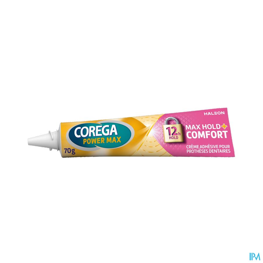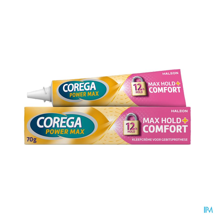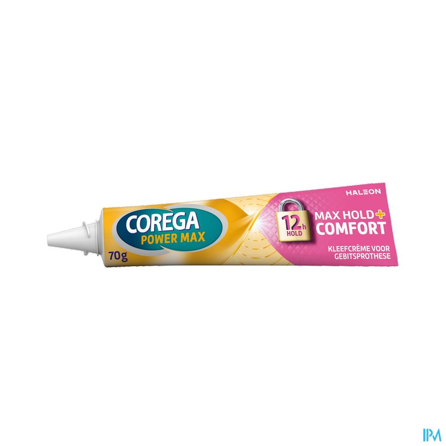 Corega Max Hold + Comfort kleefmiddel voor gebitsprotheses geeft de hele dag een stevige houvast voor een comfortabele fixatie die voedselresten helpt buiten te houden.