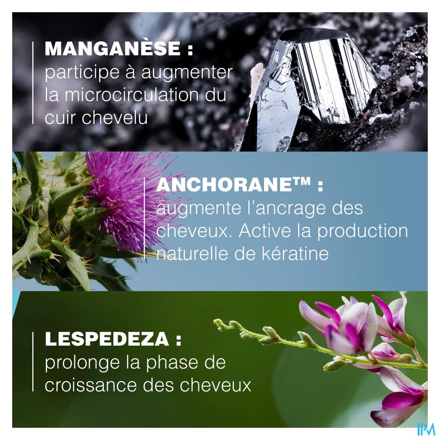 • Het haar is dikker², volumineuzer² en heeft een sterkere haarvezel² • Unieke werking: Zorgt ervoor dat de haarvezel beter in de hoofdhuid vastzit en reguleert de haarcyclus • De formule bevat: ANCHORANE voor een betere verankering van de haarvezel in de hoofdhuid, LESPEDEZA voor meer haardensiteit, MANGALIDONE voor de microcirculatie en hydraterende bestanddelen voor meer comfort bij gebruik