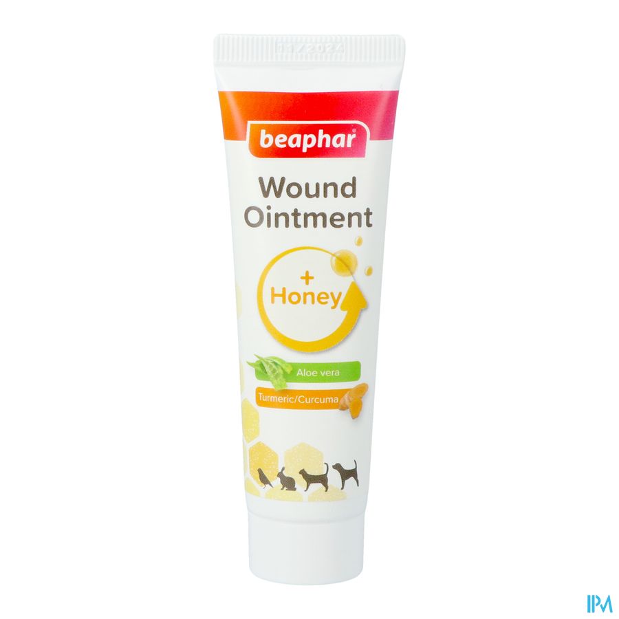 Beaphar Derma+ Zalf ondersteunt het herstellend vermogen van de huid bij uw huisdier. combineert de eigenschappen van honing met kurkuma, Aloë vera en etherische oliën om de huid te herstellen en beschermen. De zalf helpt de huid te reinigen en ondersteunt het herstellende proces van de huid. Beaphar Derma+ zalf kan gebruikt worden bij herstel van de snavel en poten bij vogels.