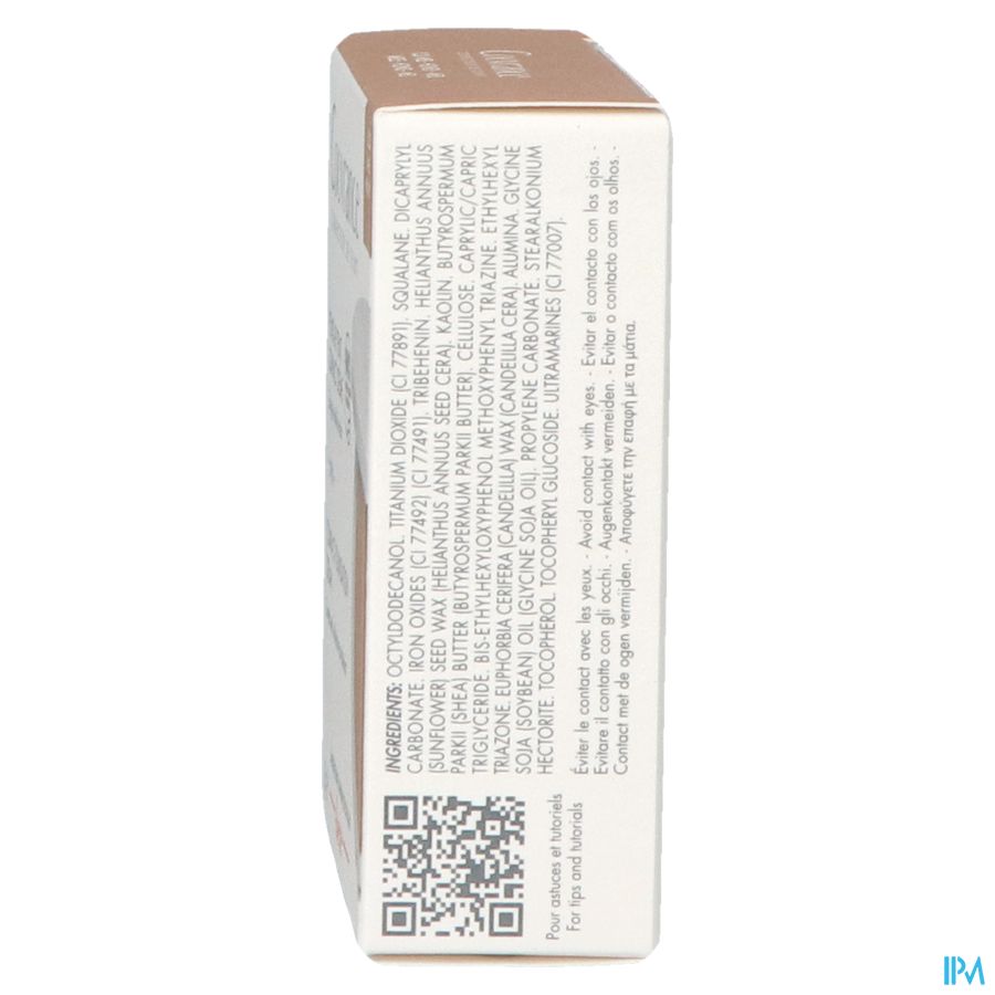 OCTYLDODECANOL. TITANIUM DIOXIDE (CI 77891). SQUALANE. DICAPRYLYL CARBONATE. IRON OXIDES (CI 77492) (CI 77491). TRIBEHENIN. HELIANTHUS ANNUUS (SUNFLOWER) SEED WAX (HELIANTHUS ANNUUS SEED CERA). KAOLIN. BUTYROSPERMUM PARKII (SHEA) BUTTER (BUTYROSPERMUM PARKII BUTTER). CELLULOSE. CAPRYLIC/CAPRIC TRIGLYCERIDE. BIS-ETHYLHEXYLOXYPHENOL METHOXYPHENYL TRIAZINE. ETHYLHEXYL TRIAZONE. EUPHORBIA CERIFERA (CANDELILLA) WAX (CANDELILLA CERA). ALUMINA. GLYCINE SOJA (SOYBEAN) OIL (GLYCINE SOJA OIL). PROPYLENE CARBONATE. STEARALKONIUM HECTORITE. TOCOPHEROL. TOCOPHERYL GLUCOSIDE. ULTRAMARINES (CI 77007)