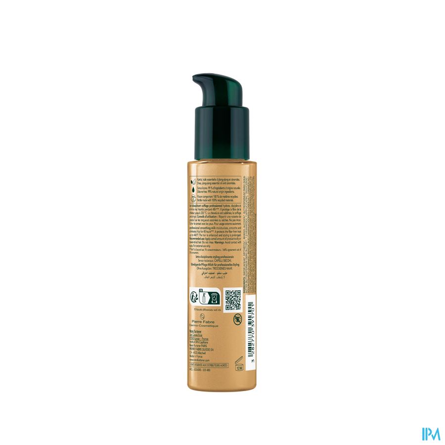 De Disciplinerende melk voor professionele styling is de ideale verzorging zonder spoelen om droog haar diepgaand te hydrateren en in bedwang te houden. Geïnspireerd door kapsalons, maakt het komaf het kroes gedurende 48 uur¹ en maakt de styling gemakkelijker zodat deze langer blijft zitten. De lichte, melkachtige formule beschermt de vezel tegen hitte tot 230 °C, zonder hem te verzwaren. Het haar wordt ideaal gehydrateerd, in toom gehouden en het wordt beter gestyled. Zonder siliconen.
