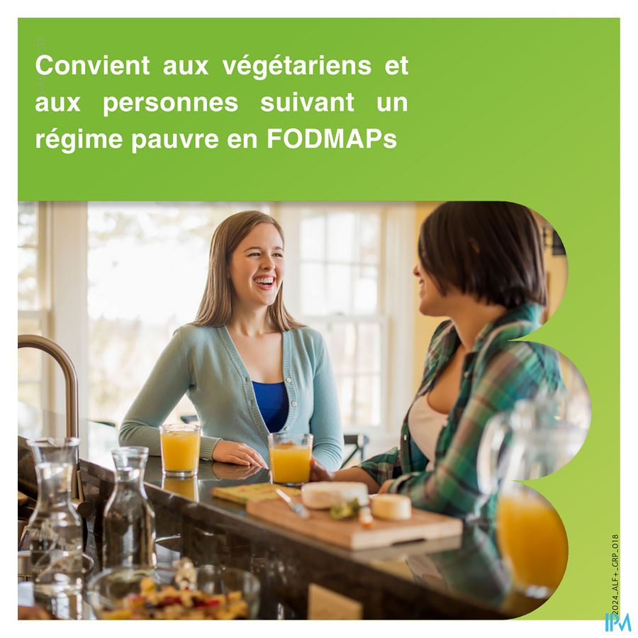 Alflorex+® is glutenvrij, lactosevrij, zuivelvrij, conserveermiddelvrij en sojavrij. Het is geschikt voor vegetariërs en mensen die een FODMAP-laag dieet volgen.
