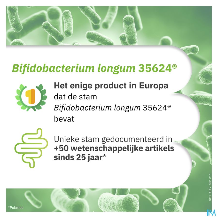 Alflorex+® is een voedingssupplement dat de unieke stam Bifidobacterium longum 35624® bevat. De unieke stam van alflorex+® is gedocumenteerd in meer dan 50 wetenschappelijke artikels.
