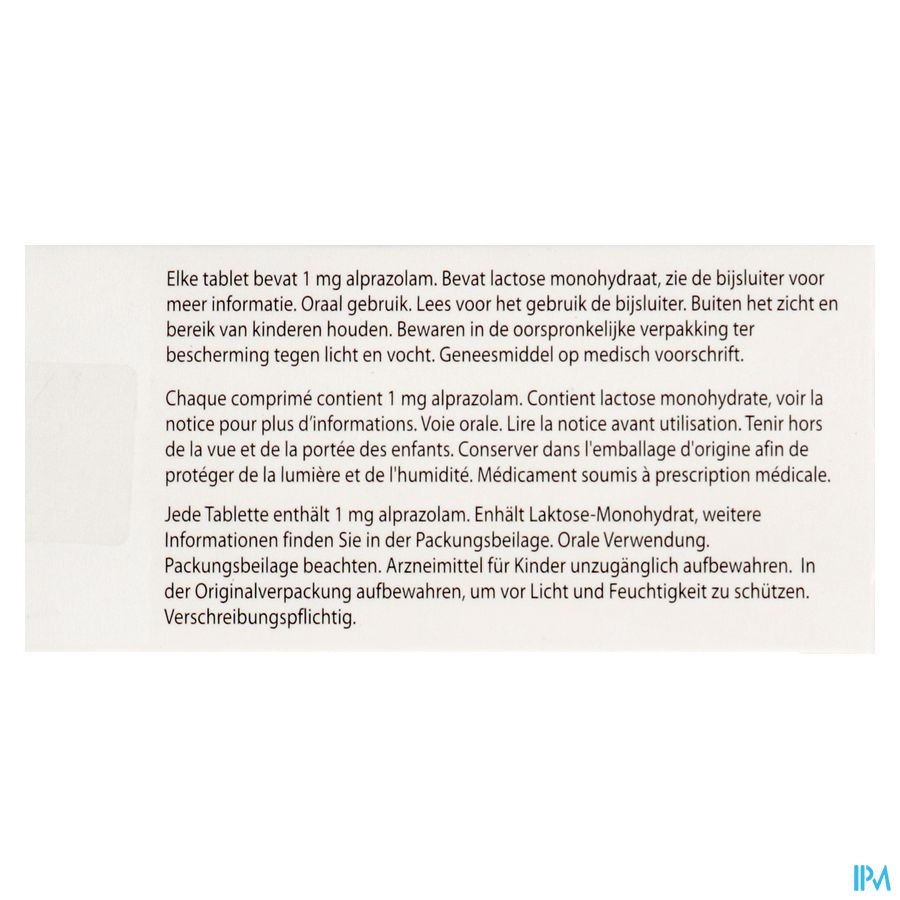 • De werkzame stof in dit middel is alprazolam. Alprazolam AB 0,25 mg, 0,5 mg en 1 mg tabletten bevatten respectievelijk 0,25, 0,5 en 1 mg alprazolam per tablet.