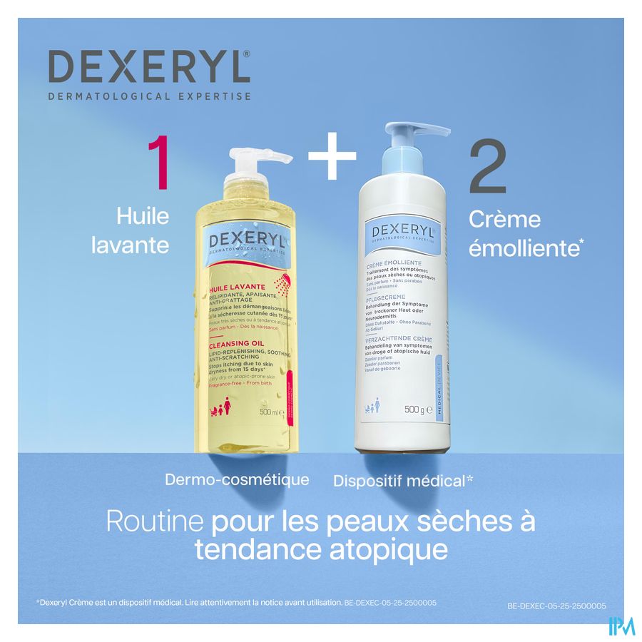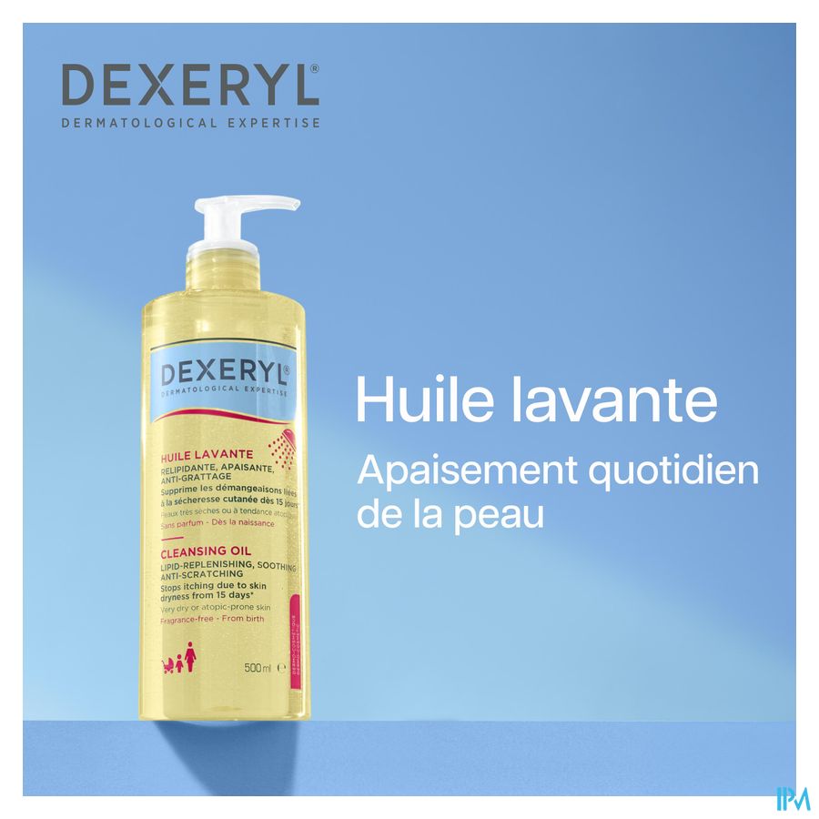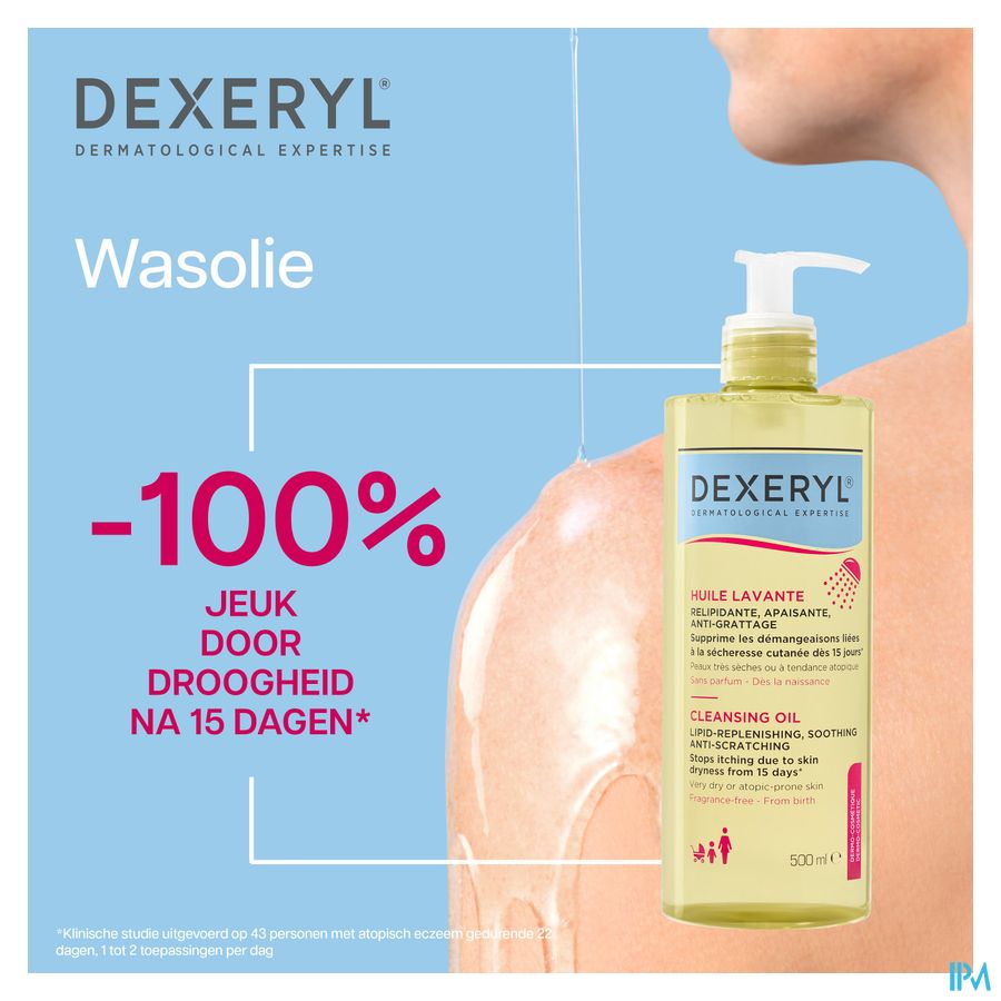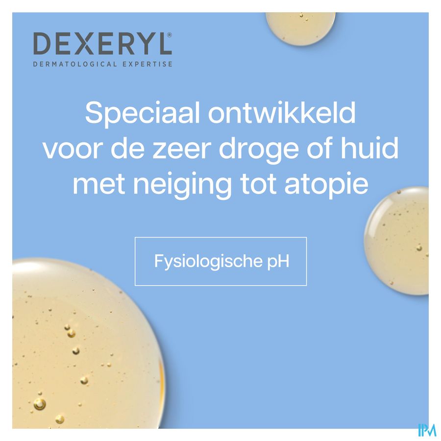 Een droge huid of huid gevoelig voor eczeem kan al snel huidirritaties vertonen bij contact met water en zeep. Dexeryl reinigende olie is speciaal ontwikkeld voor de droge tot zeer droge huid en de huid gevoelig voor eczeem. De formule reinigt de huid op milde wijze, oefent een huidkalmerende en lipidenherstellende werking uit zonder de huidbarrière uit balans te brengen. De jeuk is na 15 dagen gebruik¹ met 100% verminderd. Geschikt voor de huid van het hele gezin. De formule zonder zeep en parfum is geschikt voor gebruik bij baby's vanaf de geboorte. De vloeibare textuur is gemakkelijk aan te brengen en omhult de huid met een aangenaam luchtig en zacht schuim, dat gemakkelijk weer af te spoelen is.