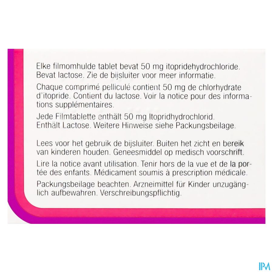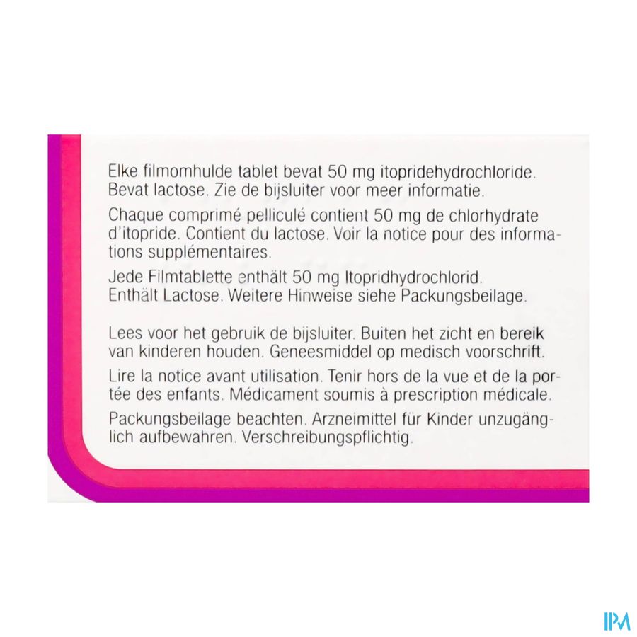 - De werkzame stof in dit medicijn is itopridehydrochloride. Elke filmomhulde tablet bevat 50 mg itopridehydrochloride.