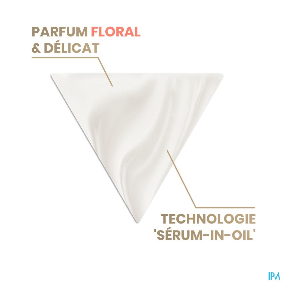 De "serum-in-olie" technologie garandeert een lichte, smeltende textuur met het comfort van een olie voor intense voeding. Deze hoogwaardige formule, getest op de gevoelige huid en ondersteund door 7 klinische onderzoeken, is 88% natuurlijk en VEGAN.